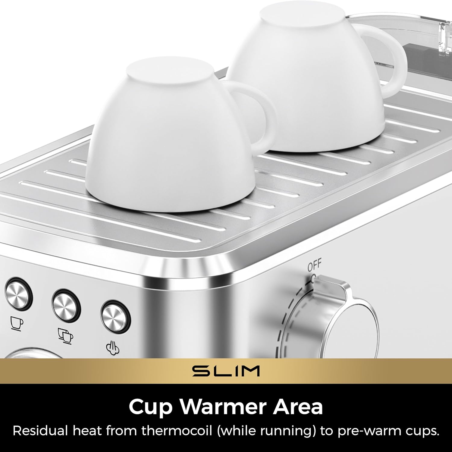 CHULUX Slim Espresso Machine with Milk Frother Steam Wand, 20 Bar Professional Italian Pump Espresso Coffee Machine for Home Cappuccino & Latte Maker, Silver