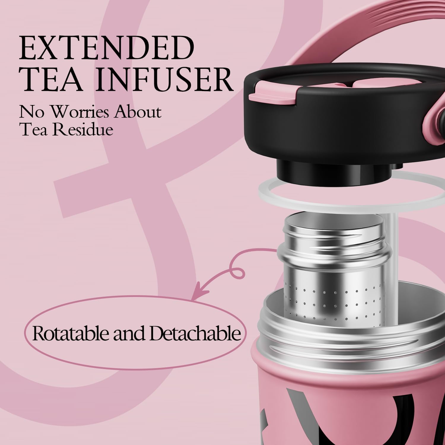GOOM 20 oz Spill Proof Tumbler with Lid and Straw, Top Handle, Extended Tea Infuser, 6-Layer Insulation 18/10 Stainless Steel, Christmas Gifts for Mom Women Her, Teacher Gifts - Pink