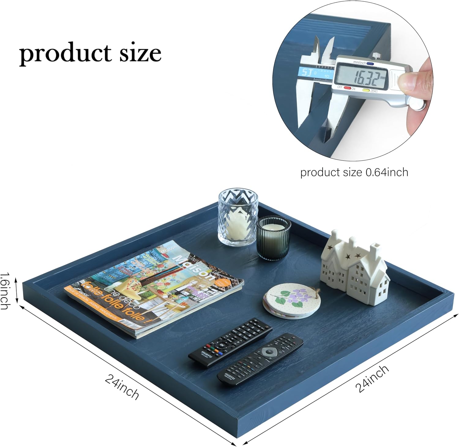 Square Ottoman Table Tray 24" - Rustic Wooden Serving Tray for Farmhouse Decorative Oversized Coffee Table Trays Living Room Kitchen Counter Breakfast Blue