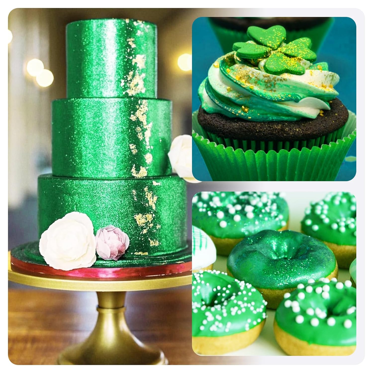 Edible Glitter - 1oz Luster Dust Edible Food Grade Glitter for Cocktail, Cake Decorating, Baking, Drinks - Shimmer Dust Powder, Metallic Food Coloring Powder for Icing, Fondant, Candy, Cookie (Green)
