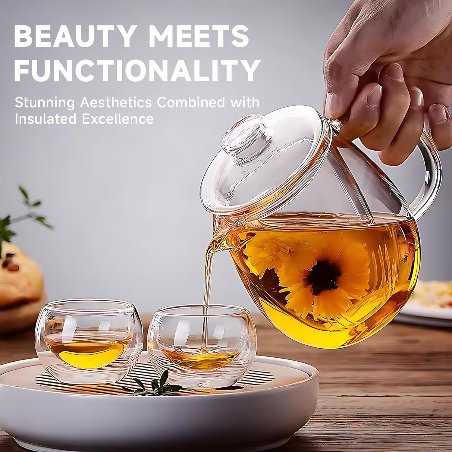 - 【Exquisite Teacup Gift】This double wall teacups elegant and unique shaped is perfect for enjoying your tea time, Classic and exquisite. Satisfy your longing for entertaining distinguished guests and leisure rural life.