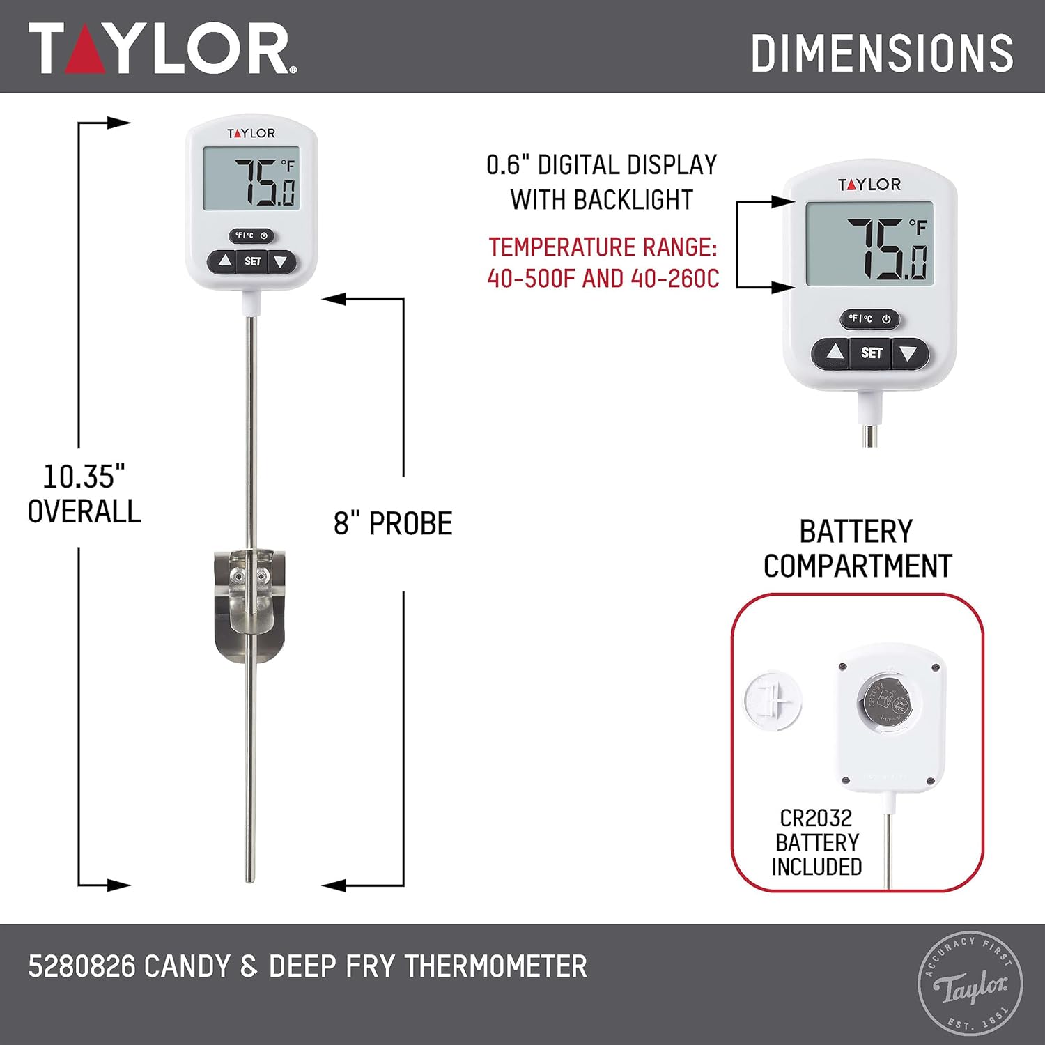 Taylor Programmable Digital Candy and Deep Fry Thermometer with Green Light Alert Display & Stainless Steel Candy Deep Fry Food Cooking Kitchen Analog Thermometer, 12 Inches