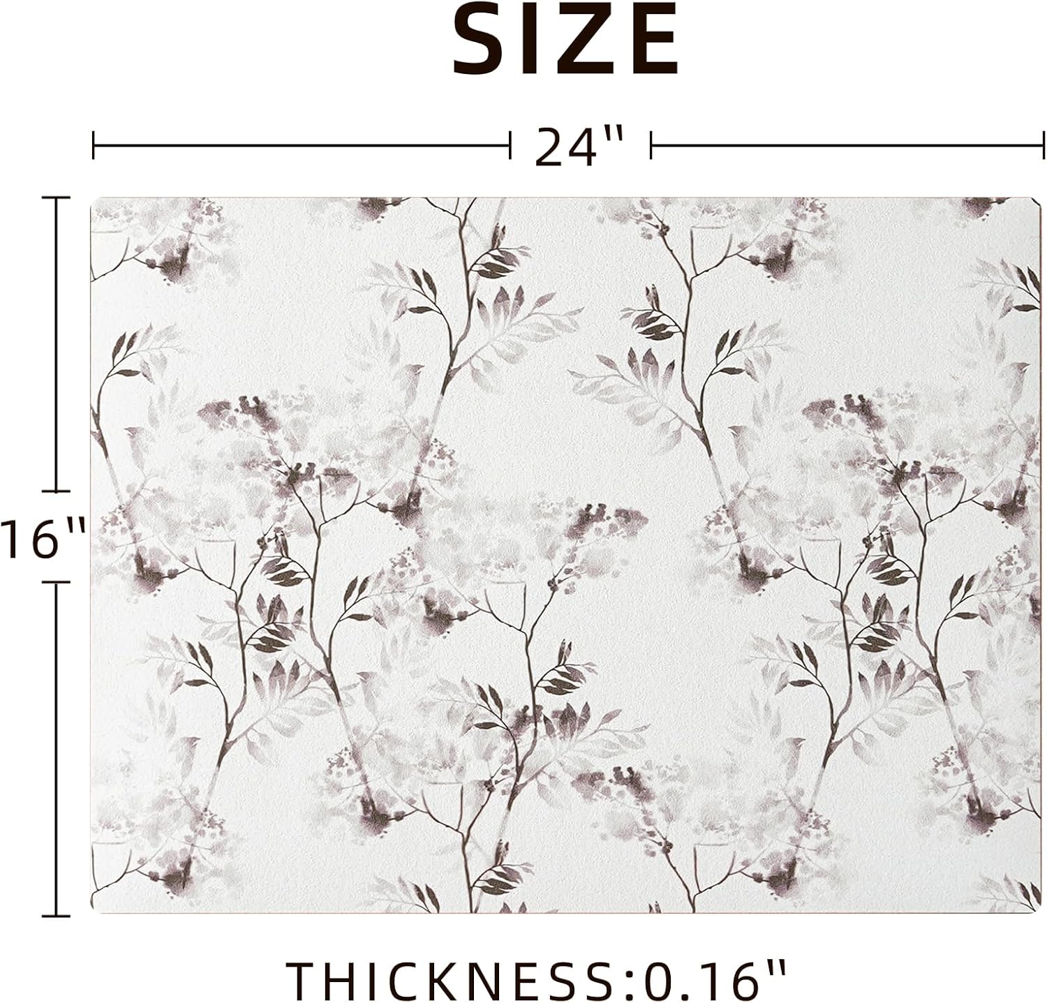 Dish Drying Mat Diatomaceous Earth Soft Coffee Mat, Silicone Dish Drying Mat for Kitchen Counter or Sink for Kitchen Bathroom Coffee Bar (Inked Flower, 16 x 24 Inches)