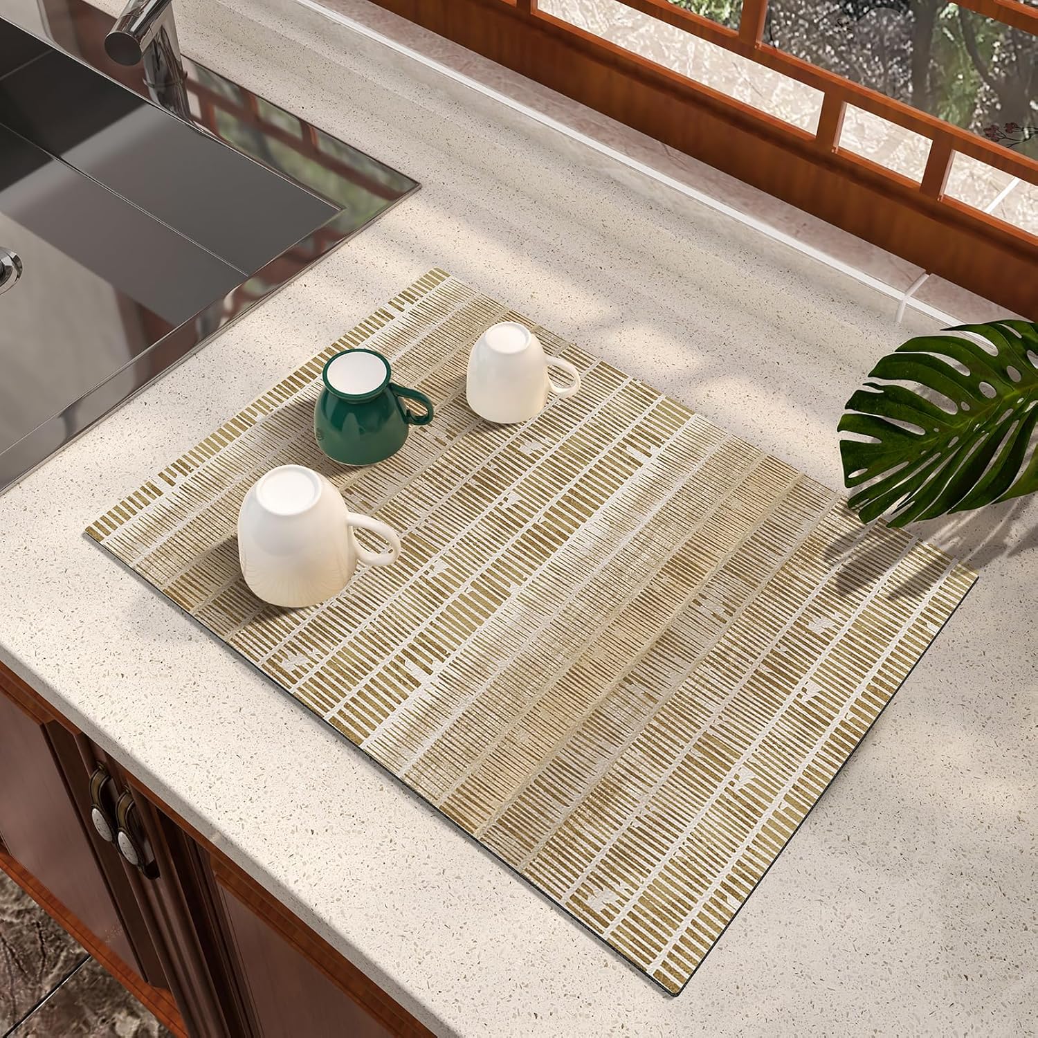 Dish Drying Mat Diatomaceous Earth Soft Coffee Mat Silicone Dish Drying Mat for Kitchen Counter or Sink for Kitchen Bathroom Coffee Bar (Linear Pattern, 16 x 24 Inches)