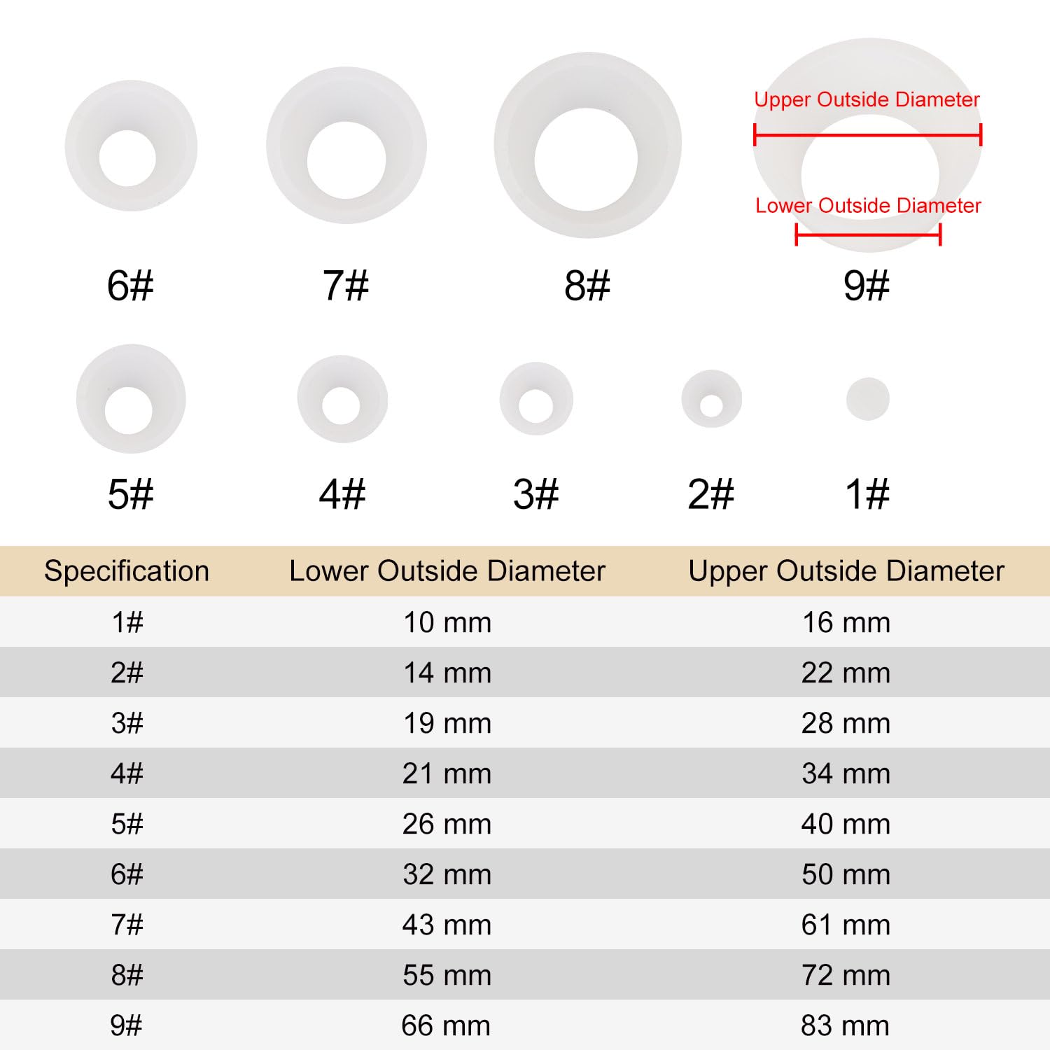 Labasics Filter Adapter Cones, Durable Tapered Collar Silicone Stopper Buchner Funnel Flask Cones Adapter Set, Wear Resistance Smooth Surface, Pack of 9, White