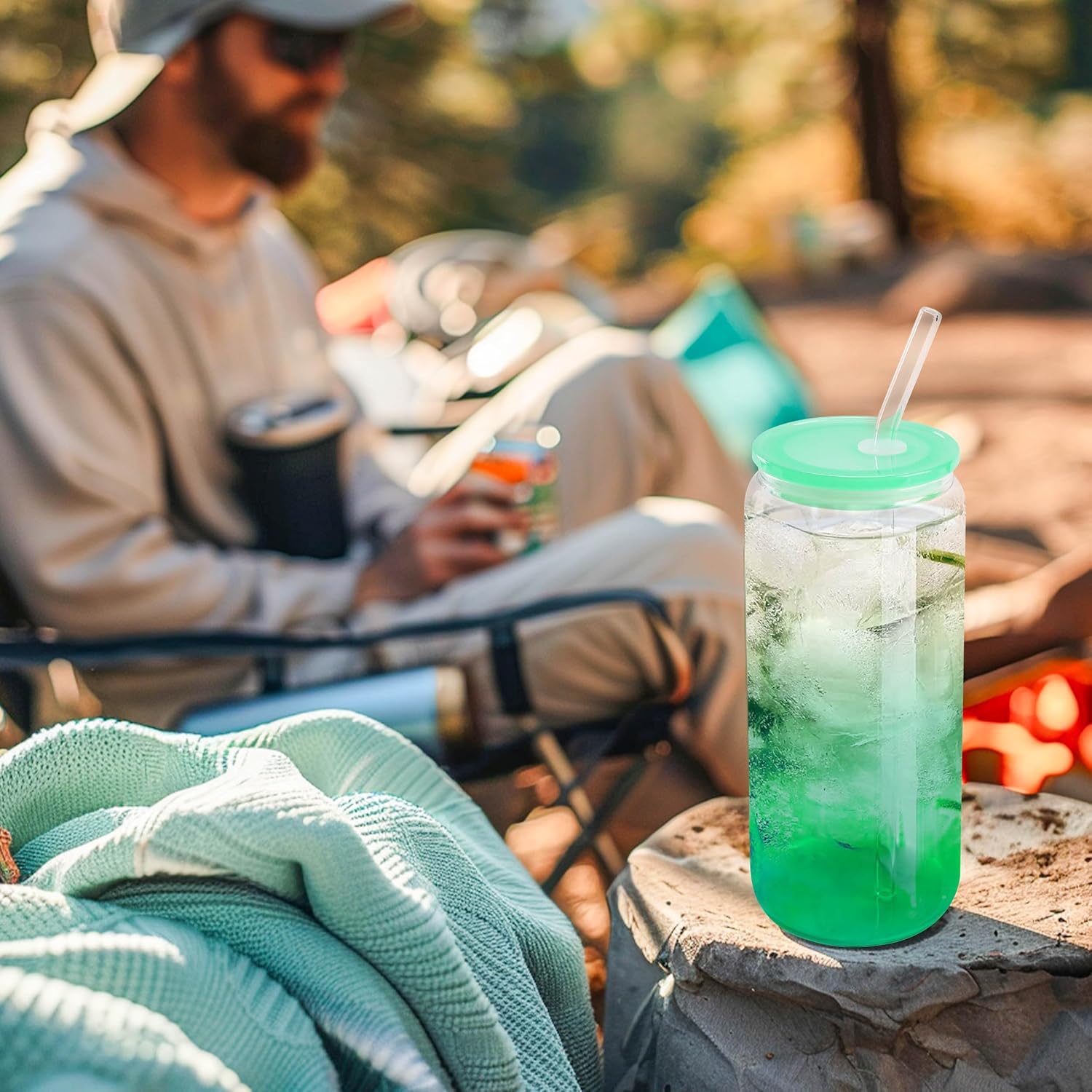 - Acrylic Lids: Each of our glass cans comes with an acrylic lid. The color of each acrylic lid matches the gradient color of the glass cup, making it a perfect match