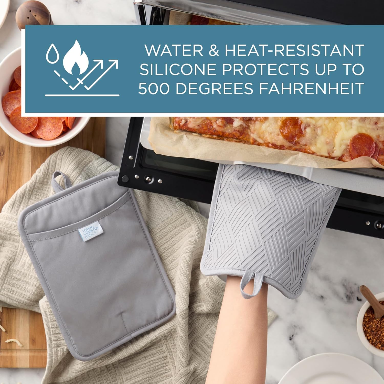 TOWN & COUNTRY BASICS Basketweave Soft Silicone Pot Holder 2-Pack Set, Heat Resistant up to 500F, Flexible Silicone, Non-Slip Grip, Grey, 7.5"x10"