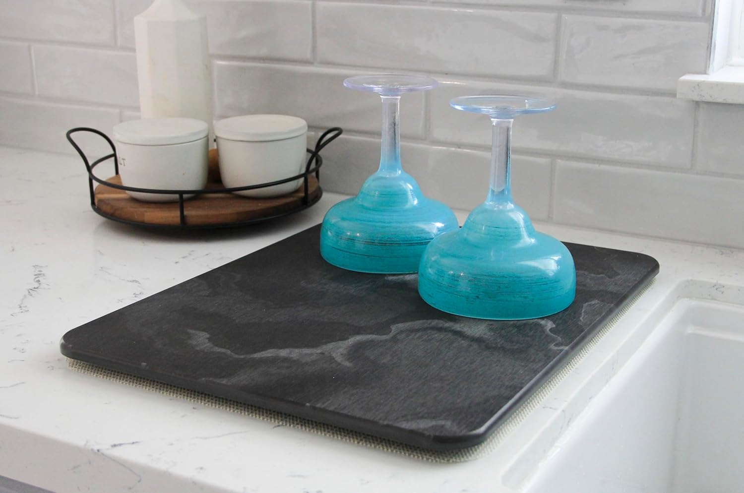 - Wide Used : The drying stone for kitchen counter can be used to place washed dishes, cups, etc. The stone drying tray can also be used as a heat proof mat, bathmat, pet feeding mat, or an ideal gift.