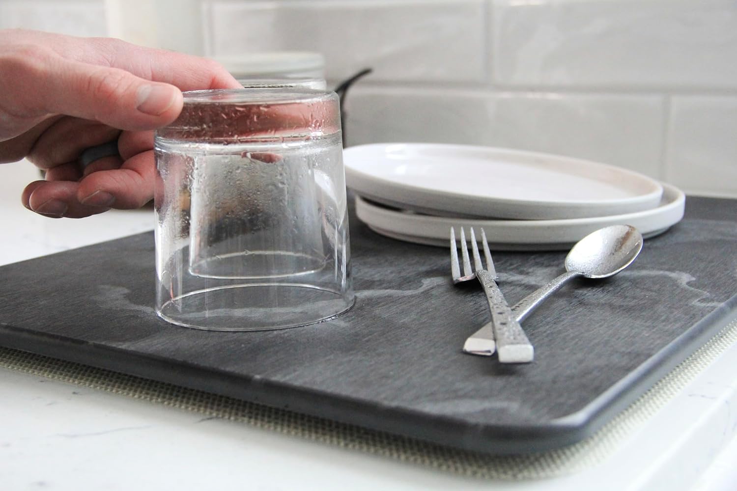 - Minimalist Design: The simple design of the stone dish drying mats for kitchen counter makes it a perfect addition to your kitchen. This dish drying stone mat matches a modern kitchen design.