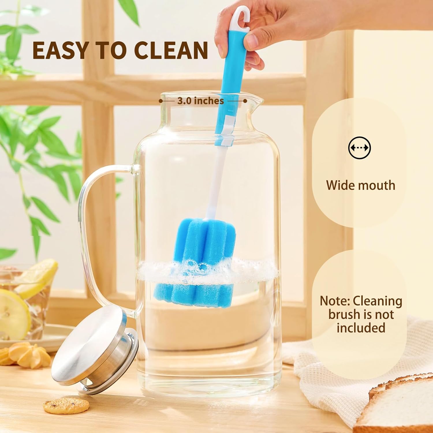 - [Effortless Cleaning]: Our water pitcher features a wide opening for easy cleaning. Made from crystal-clear glass, dirt and residue are easily spotted, ensuring effortless maintenance.