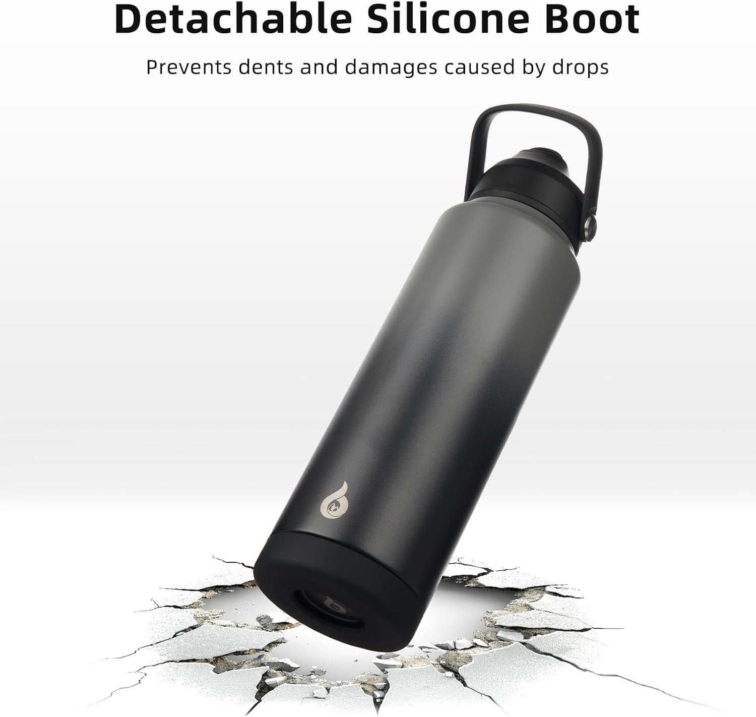 - NON-SLIP PROTECTIVE BOOT & DISHWASHER SAFE: This stainless steel water bottle comes with a detachable silicone boot to protect the bottom from bump damage. The wide mouth design of our water cup allows for easy filling, pouring, and cleaning. With 2 straws and 1 straw brush, you can easily clean the nozzle and straw with straw brush. It is also dishwasher safe, saving you time and effort in maintaining its cleanliness and hygiene
