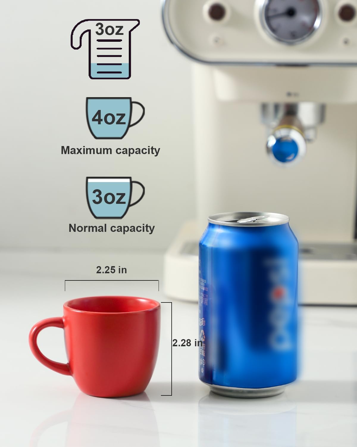- IDEAL CAPACITY OF DEMITASSE: Measuring 2.5 inch in width and 2.2 inch in height. Each small coffee cup holds 3 ounce and it’s great for a double shot of espresso. Hasense cute espresso cups can match with most coffee machines. Indulging in the aromatic and rich flavor of Italian espresso with mini tea cups.