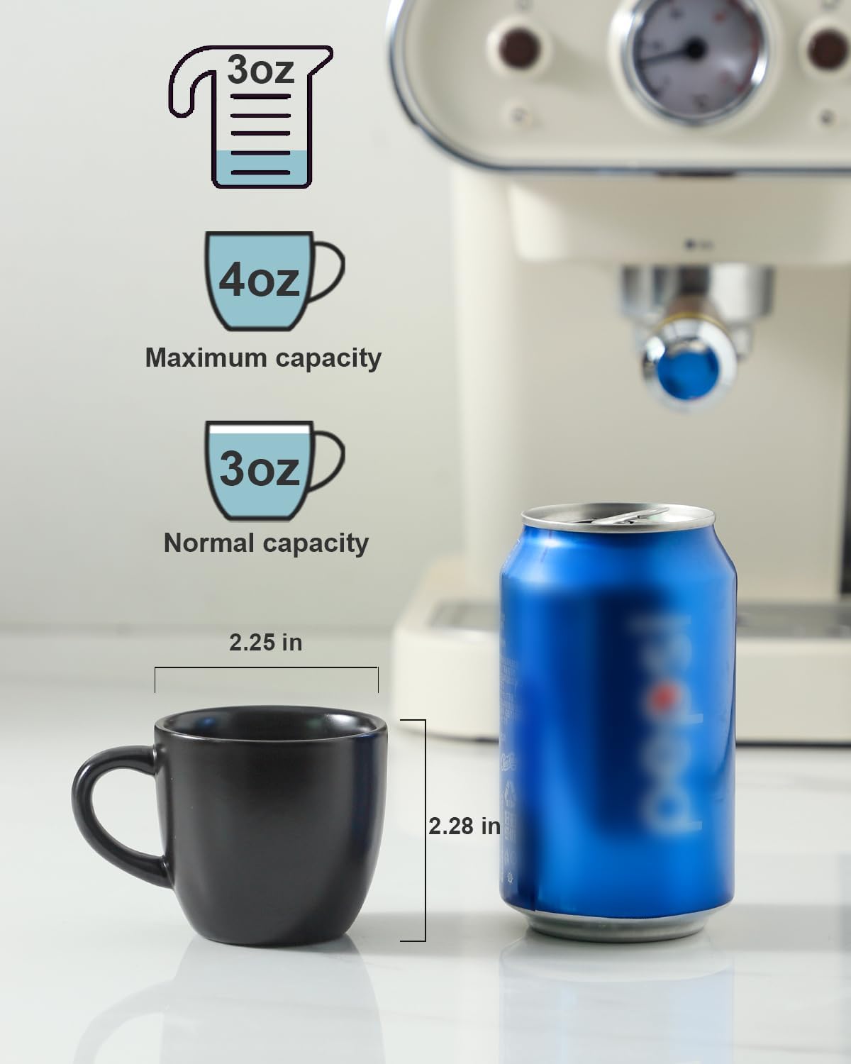 - IDEAL CAPACITY OF DEMITASSE: Measuring 2.5 inch in width and 2.2 inch in height. Each small coffee cup holds 3 ounce and it’s great for a double shot of espresso. Hasense cute espresso cups can match with most coffee machines. Indulging in the aromatic and rich flavor of Italian espresso with mini tea cups.