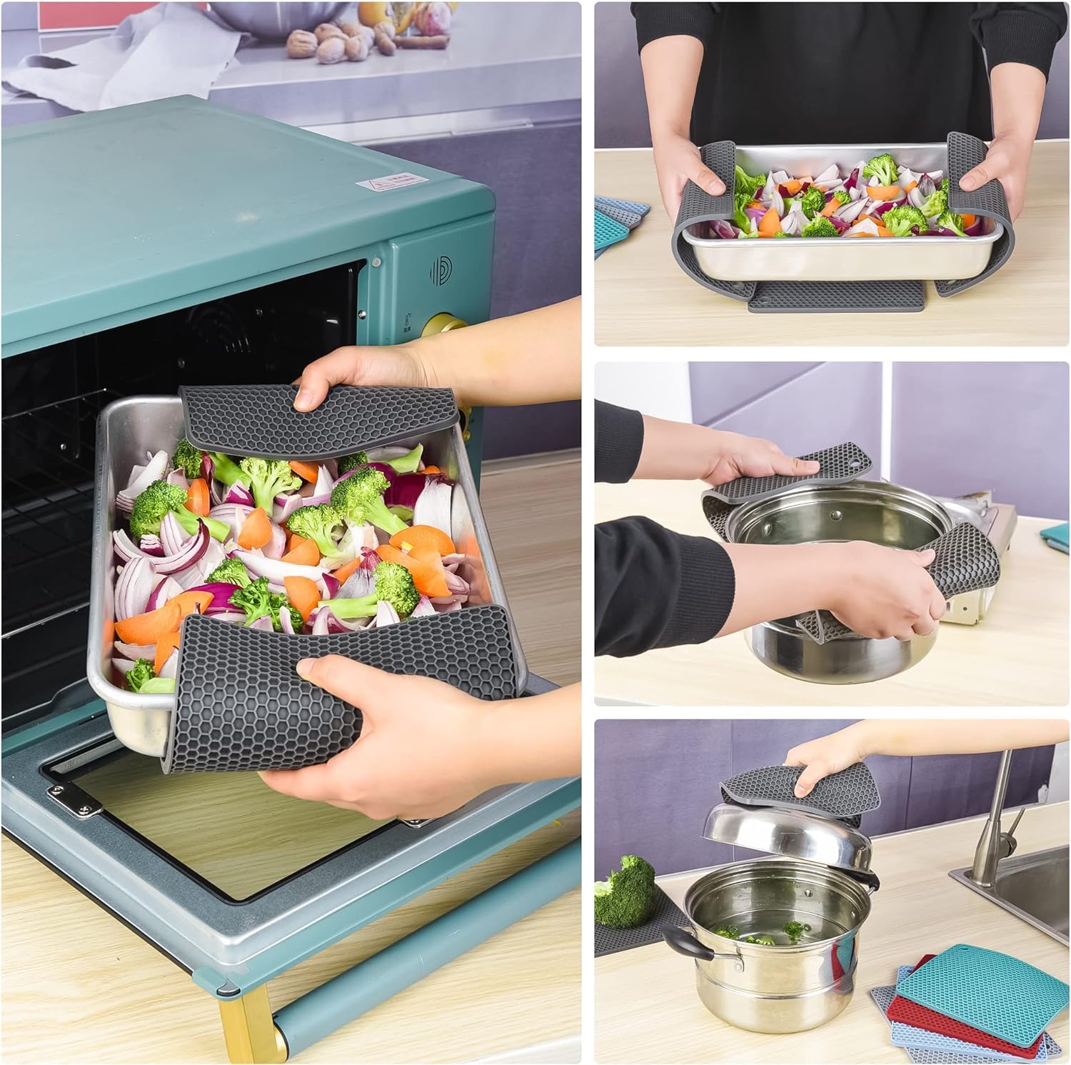 - ★ EASY TO STORE & DURABLE-Hang our purple hot pads on hook, simply hand-wash and dishwasher safe, tested to withstand repeated twisting & bending, flexible and durable, perfect size: 7,28"x7,28" and 0.24" thickness.