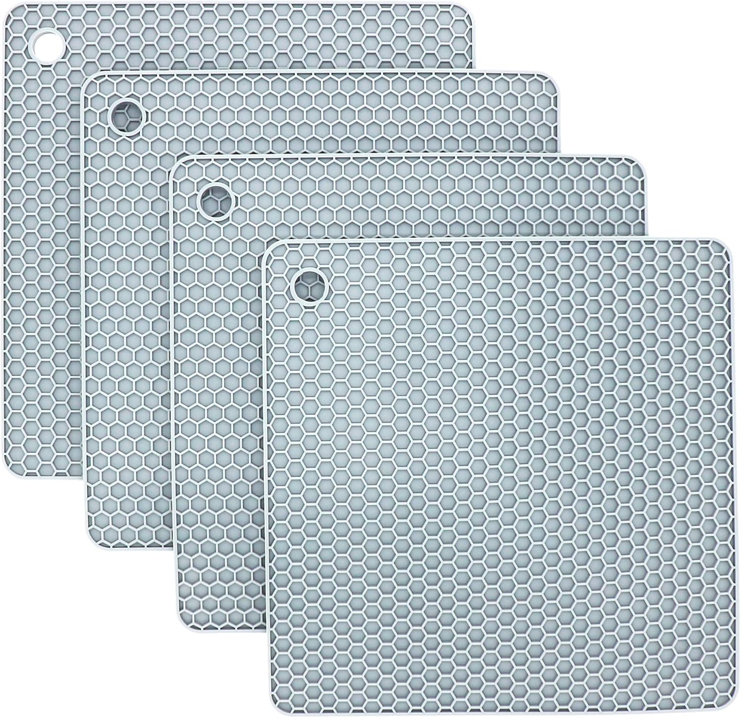 - ★ EASY TO STORE & DURABLE-Hang our light grey hot pads on hook, simply hand-wash and dishwasher safe, tested to withstand repeated twisting & bending, flexible and durable, perfect size: 7,28"x7,28" and 0.24" thickness.