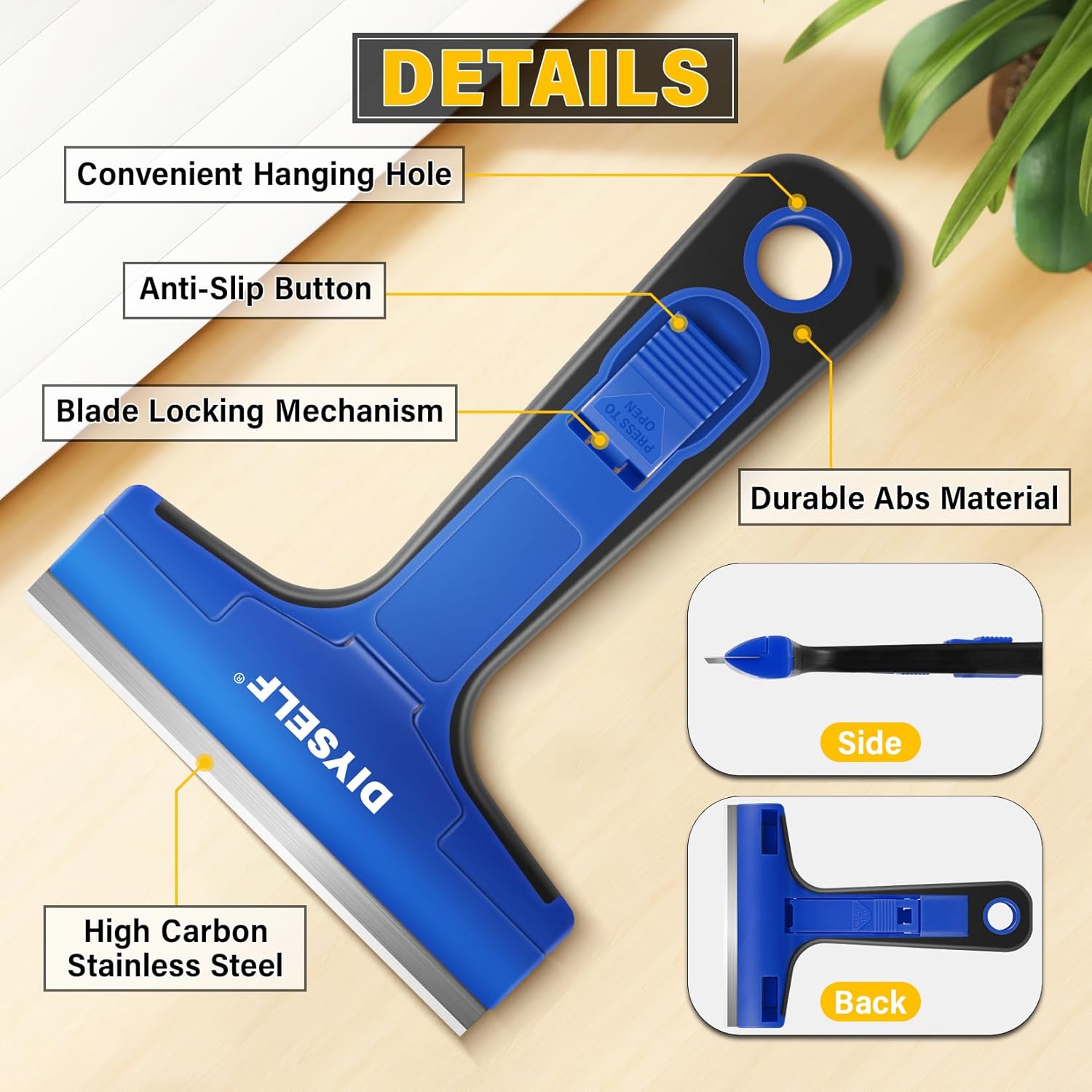 - Complete Cleaning Arsenal: Crafted for superior cleaning performance, our DIYSELF razor blade scraper features 1 stove scraper tool, 10 double-edged replaceable razor blades, and 1 portable scraper storage box. Elevate your cleaning game with this all-inclusive toolkit!