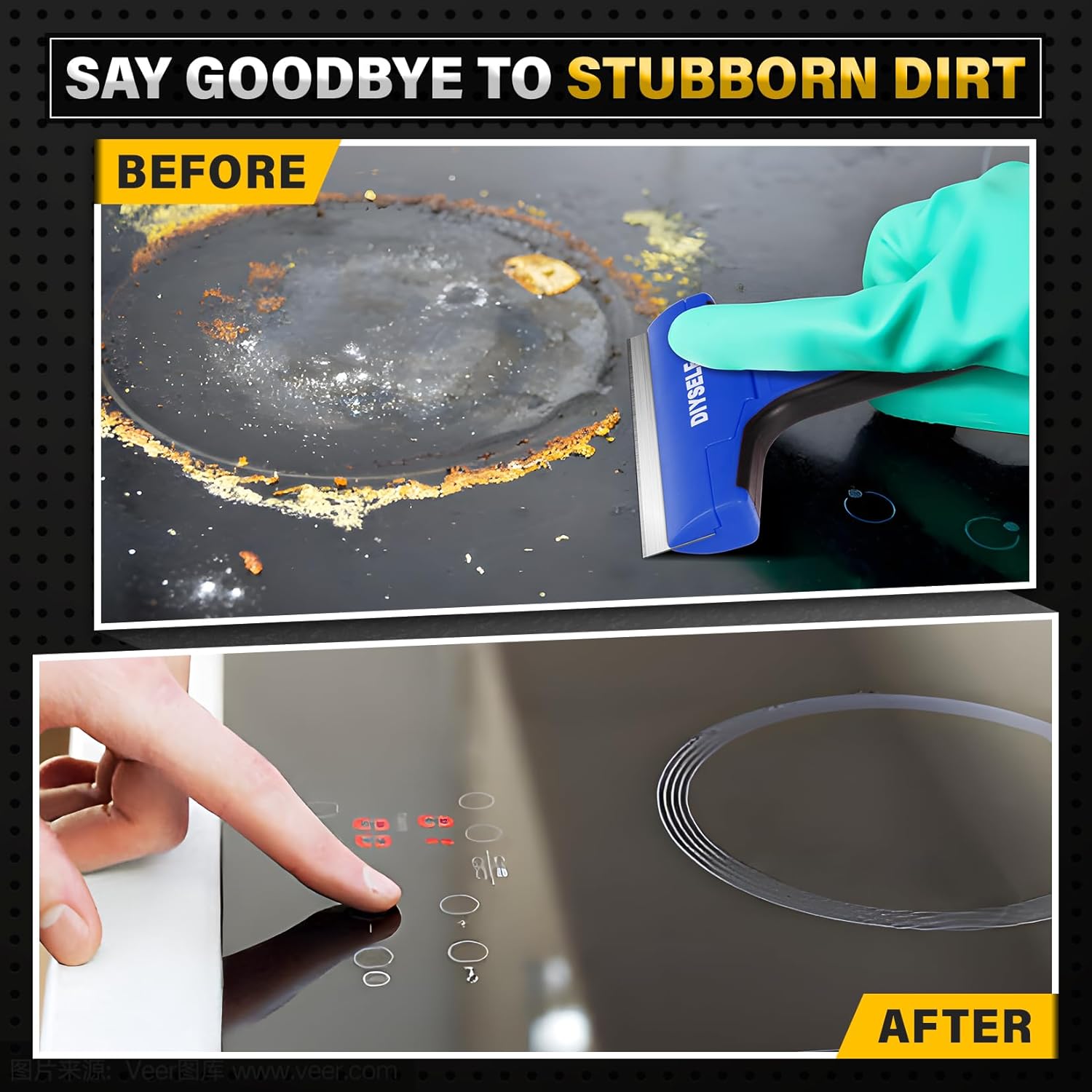 - Effortless Efficiency: Experience cleaning like never before with the ingenious design of our metal scraper. The 4-inch-wide razor blade ensures swift and thorough cleaning, covering larger areas in less time. Coupled with its ergonomic handle, cleaning becomes a breeze, saving you time and effort with every swipe.
