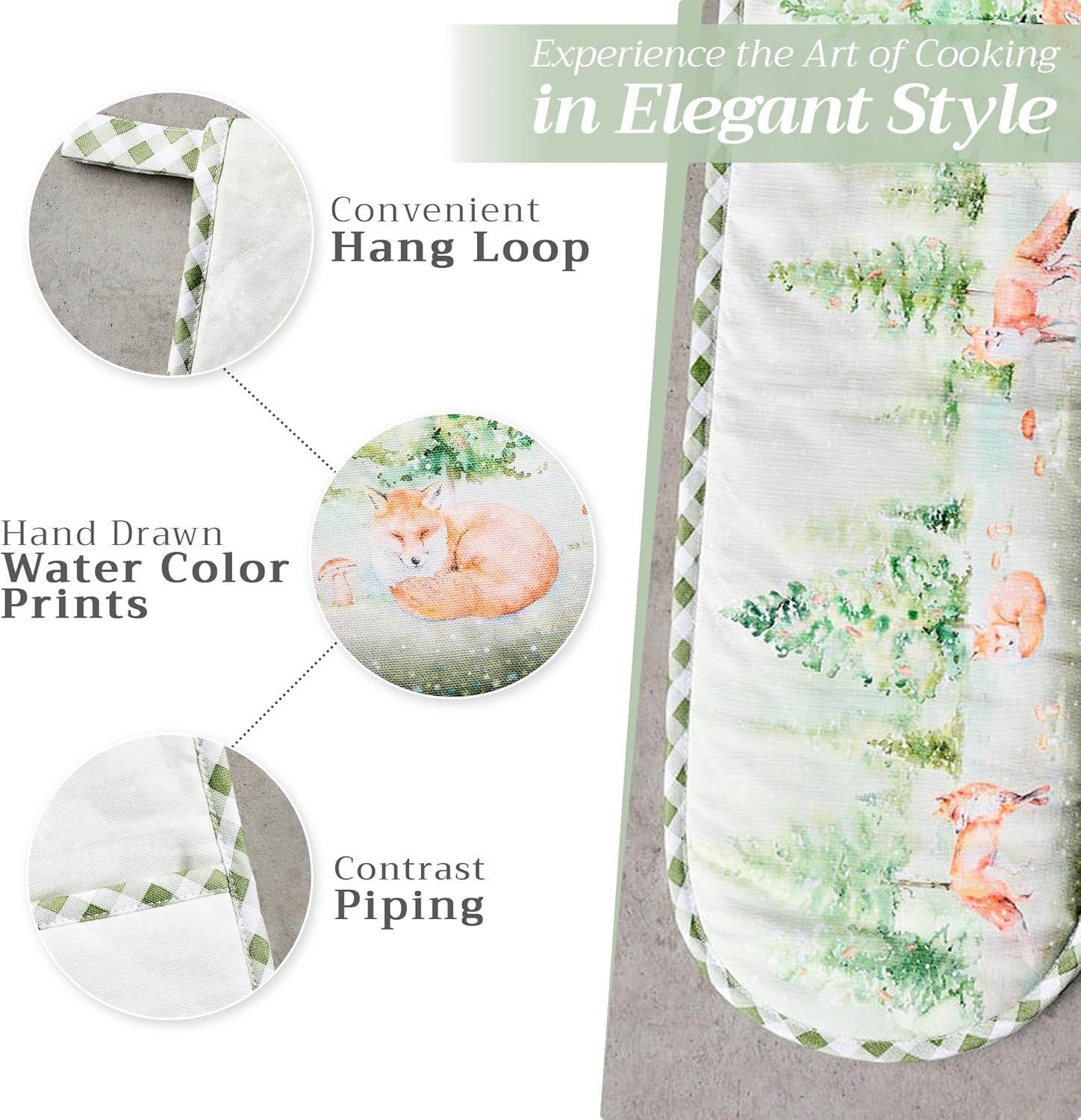 - 100% Quilted cotton: Crafted from premium quilted cotton for superior heat resistance and durability. This double oven mitt offers a soft, flexible grip and protects your hands during baking, roasting, or grilling
