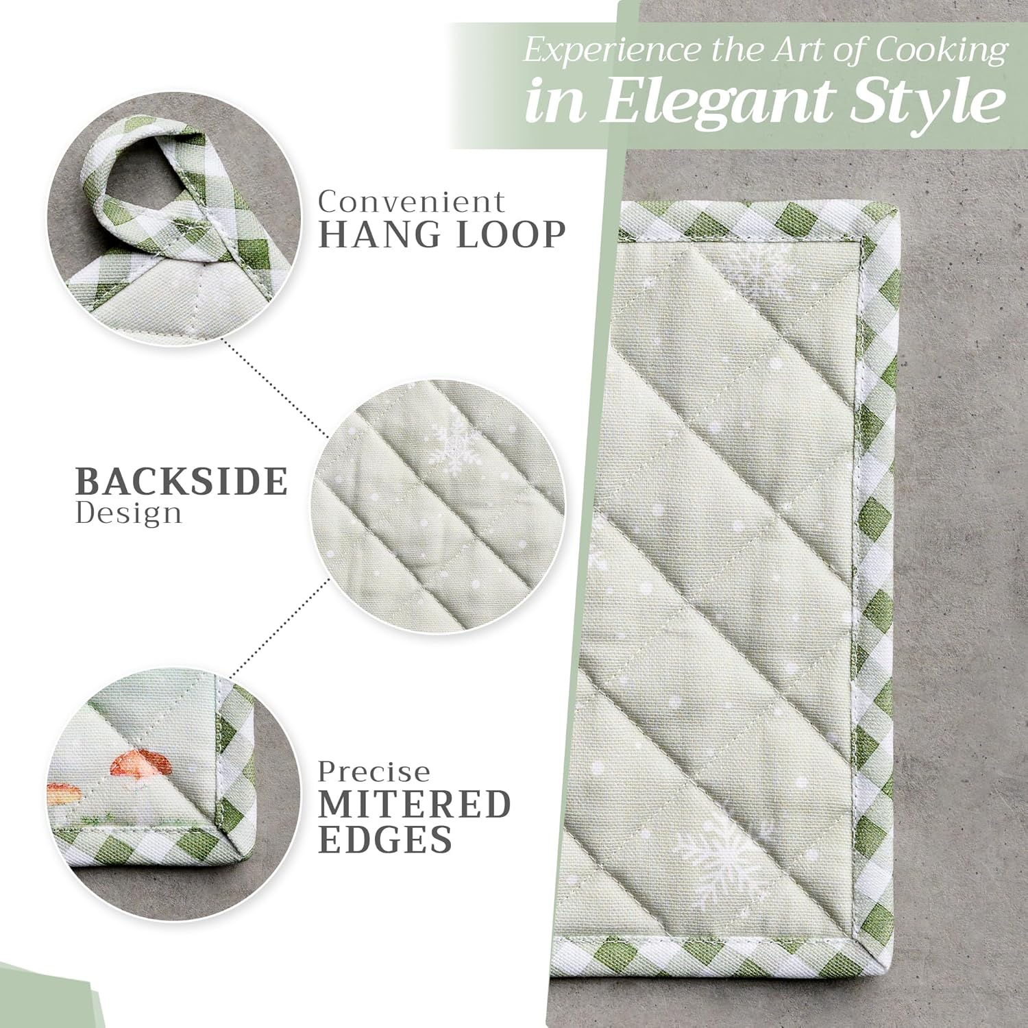 Maison d' Hermine Pot Holders Set 100% Cotton Heat Resistant Potholders 8" x 8" Hot Pads with Loop BBQ, Cooking, Baking, Grilling, Kitchen, Handling Hot Pans (Pack of 2, Winter Mornings)