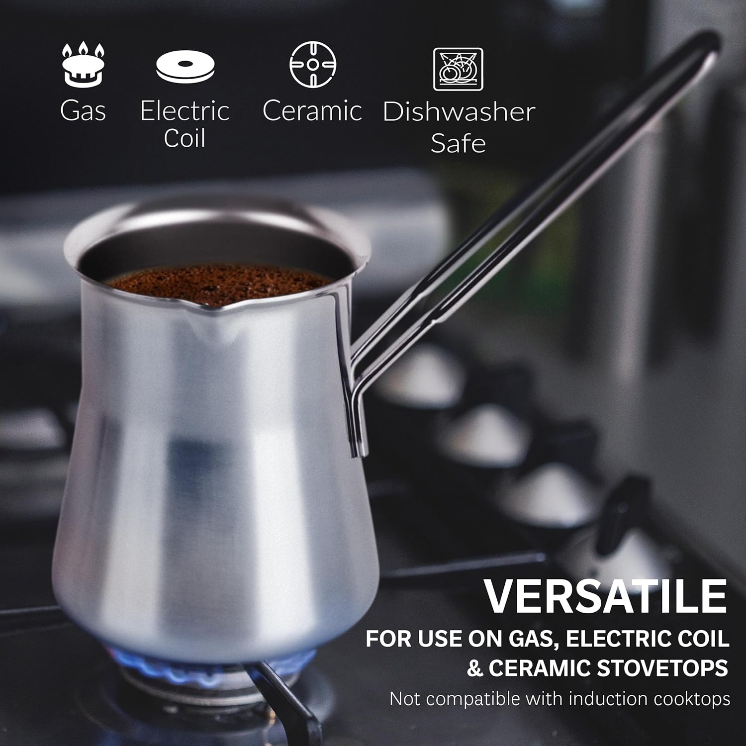 - SATISFACTION GUARANTEE - Our Turkish Coffee Pots are made from the highest quality materials available and are designed to last for years. We are so confident that you will love this product, we're offering a 1 Year Satisfaction Guarantee!