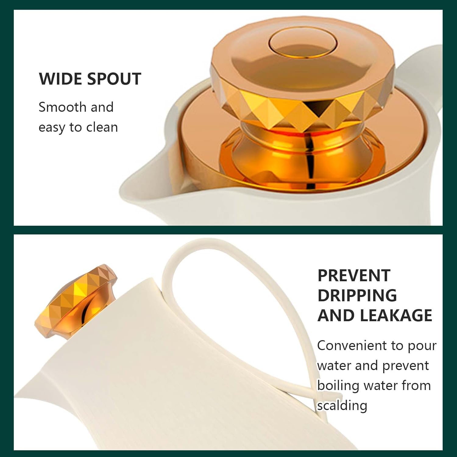 Insulated Thermal Coffee Carafe, 33 oz, Luxury Arabic-Style Insulated Carafe Flask,Coffee Tea Pot,with Spout and Glass Liner for Hot Cold Water,Housewarming Ornaments (White)