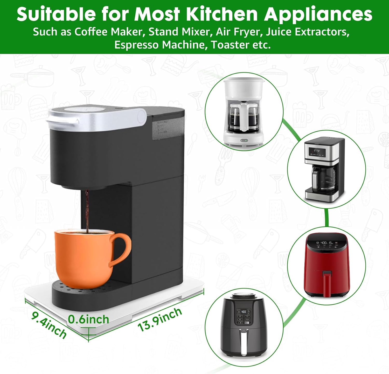 - 【Multi-functional Sliding Tray】Slider size 9.3 "W x 13.4 "L x 0.6 "D, suitable for Keurig K-Mini, Ninja,small coffee makers, small air fryers, toasters.