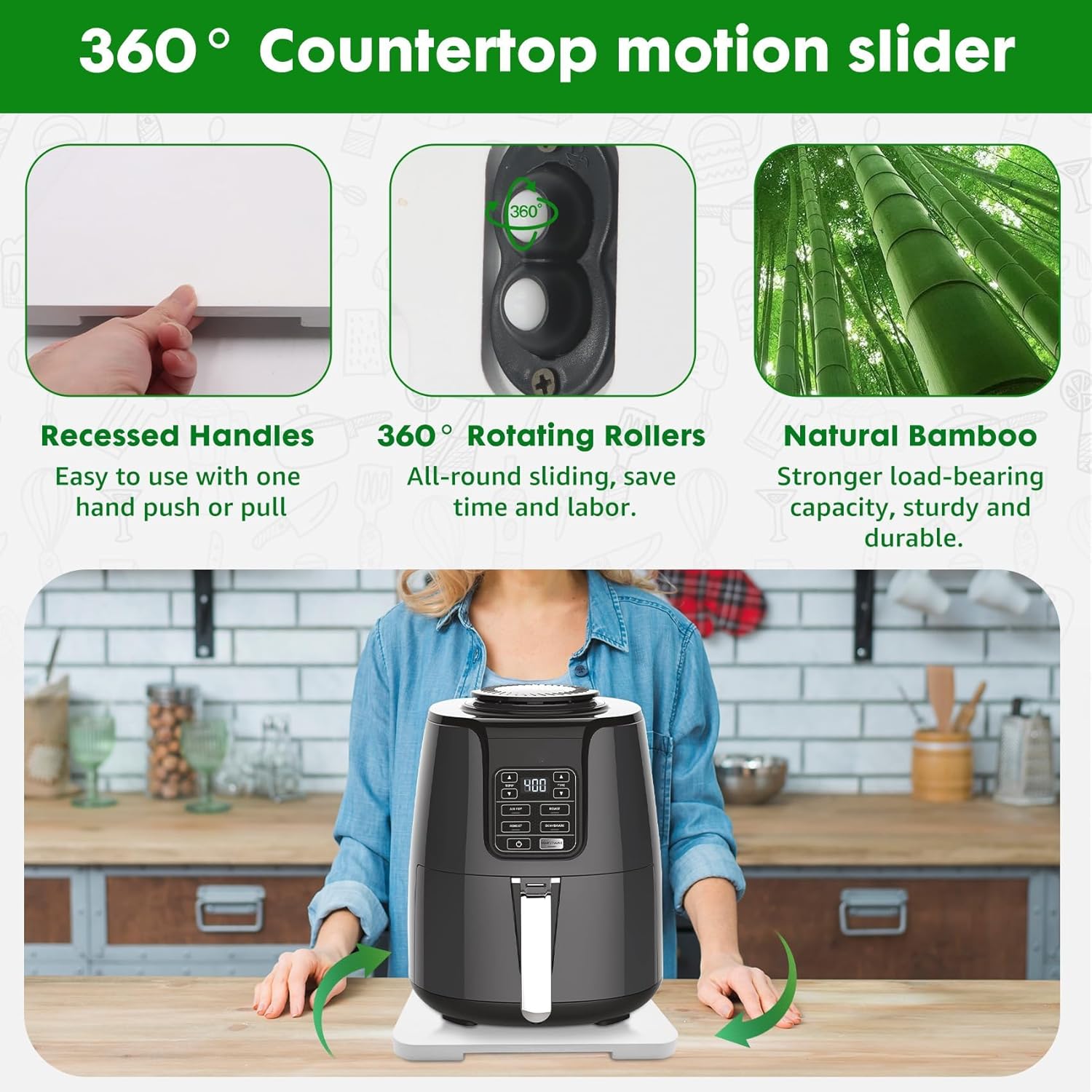 - 【360° Countertop Mobility】The appliance slider is equipped with 360° rollers for all-around mobility, making it easy to move various kitchen appliances.