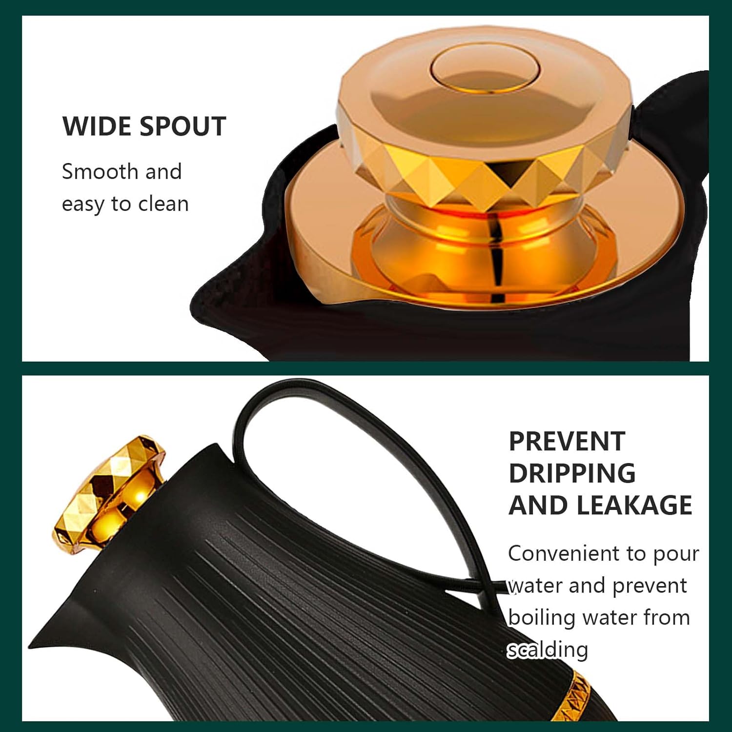 Insulated Thermal Coffee Carafe, 33 oz, Luxury Arabic-Style Insulated Carafe Flask,Coffee Tea Pot,with Spout and Glass Liner for Hot Cold Water,Housewarming Ornaments (Black)