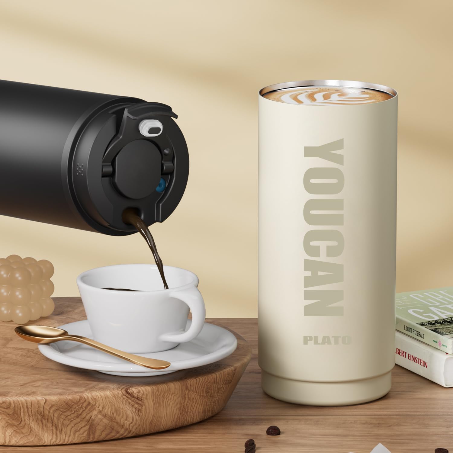- 👉𝐓𝐫𝐚𝐯𝐞𝐥 𝐂𝐨𝐟𝐟𝐞𝐞 𝐌𝐮𝐠 𝐰𝐢𝐭𝐡 𝐋𝐞𝐚𝐤 𝐏𝐫𝐨𝐨𝐟 𝐋𝐢𝐝:The lid of this coffee mug is designed with a special structure and sealing mechanism, effectively preventing liquid from spilling or leaking out of the cup, keeping your bag, table, or car clean and tidy. The lid is easy to open and close, allowing you to enjoy your drink effortlessly without worrying about it being too tight or difficult to operate.