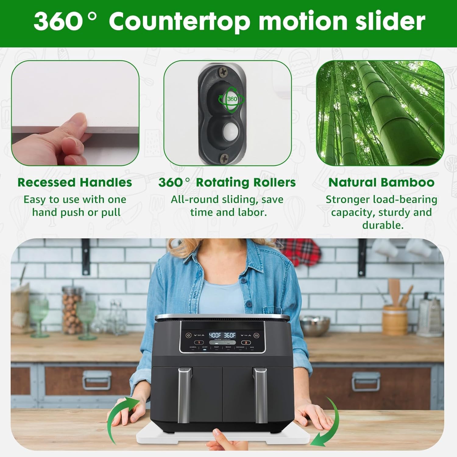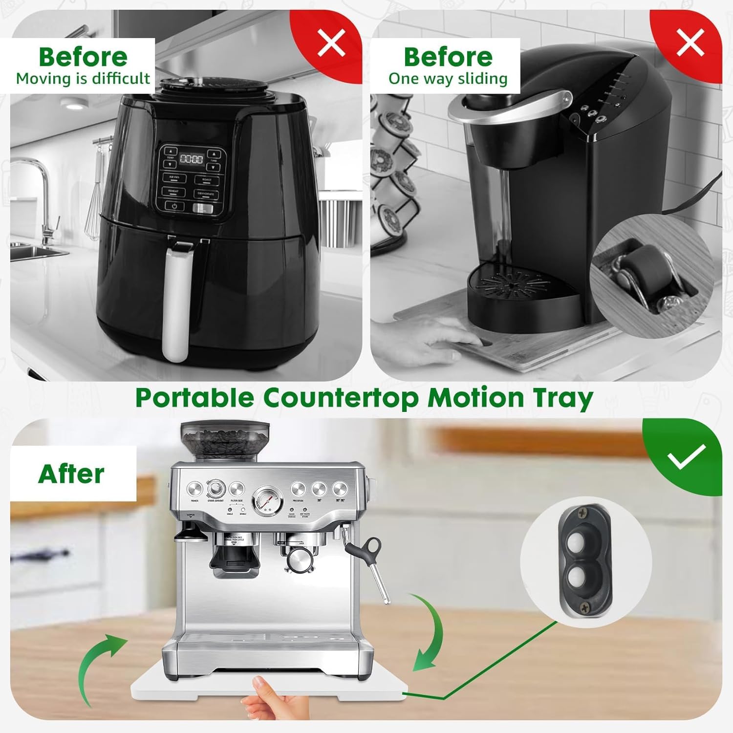 - 【360° Countertop Mobility】The appliance slider is equipped with 360° rollers for all-around mobility, making it easy to move various kitchen appliances.