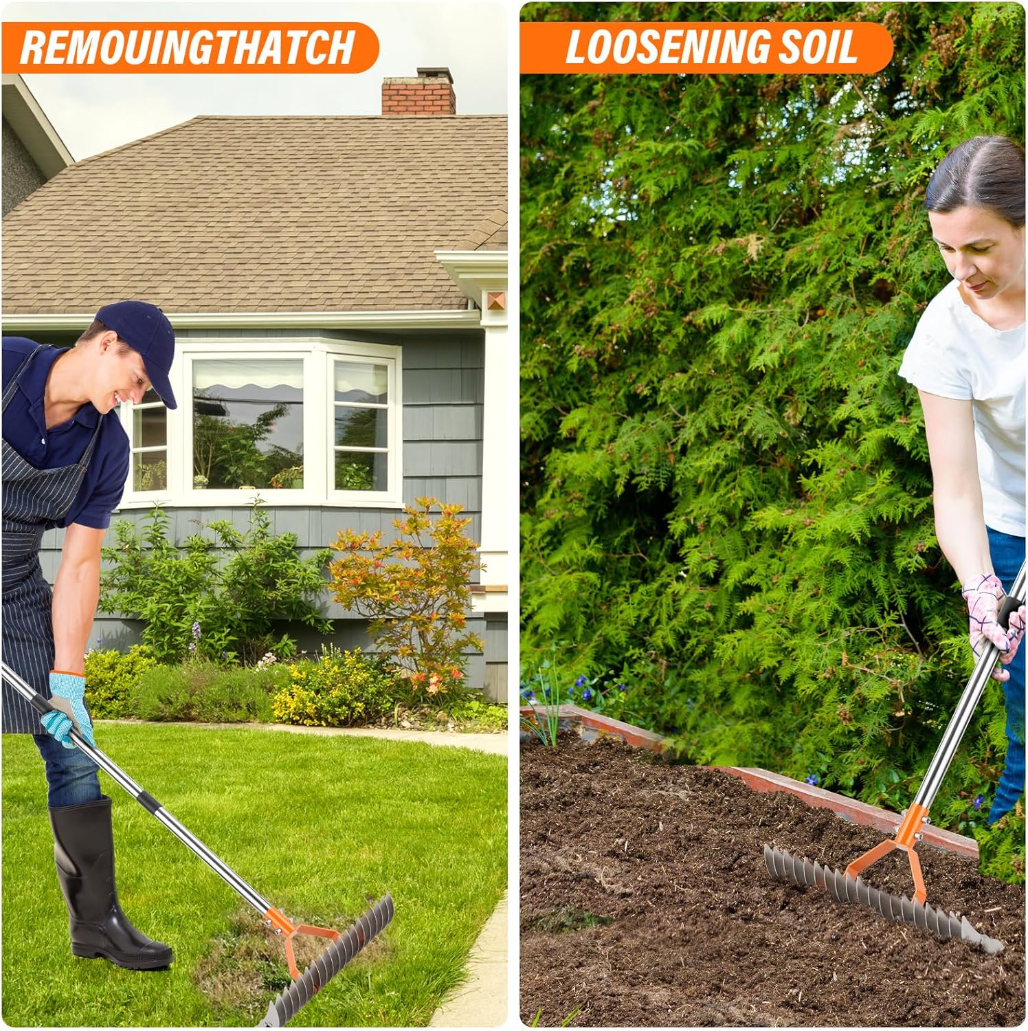 - From spring dethatching (March-May) to fall leaf cleanup (Sept-Nov), this 6-in-1 tool handles turf renovation, compost turning, gravel leveling, and pine needle removal. Includes lifetime warranty against bending/rusting.