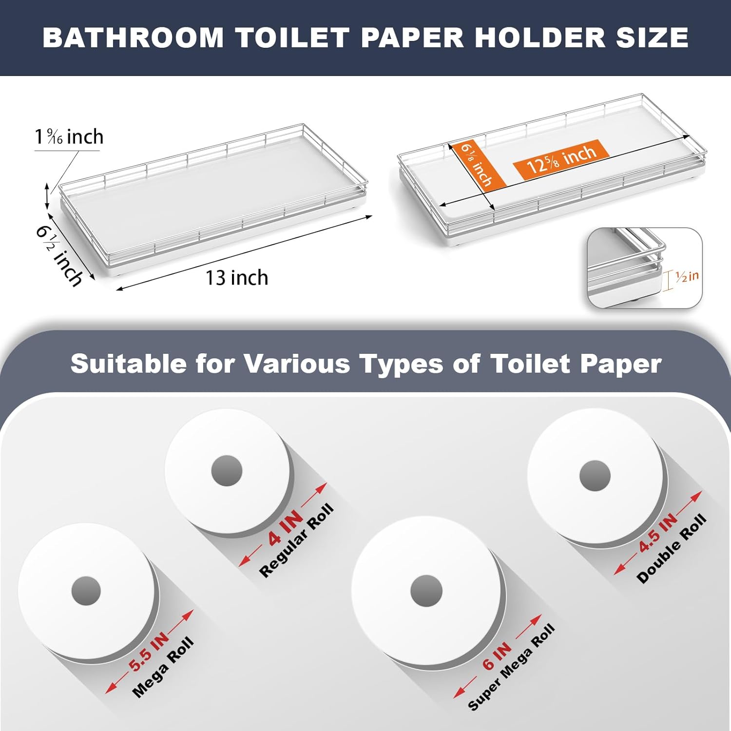 - Versatile Functionality: Elevate your daily routine with our toilet tank basket tray; Neatly arrange bathroom essentials such as toilet paper, lotions, scented candles and potted plants, keeping your countertop tidy; Add a touch of elegance to your dresser by using the bathroom vanity tray to display perfumes, jewelry, and cosmetics; Impress your guests with neatly arranged hand towels and toiletries organized on the large toilet tray for bathroom counter or use it as a kitchen soap tray
