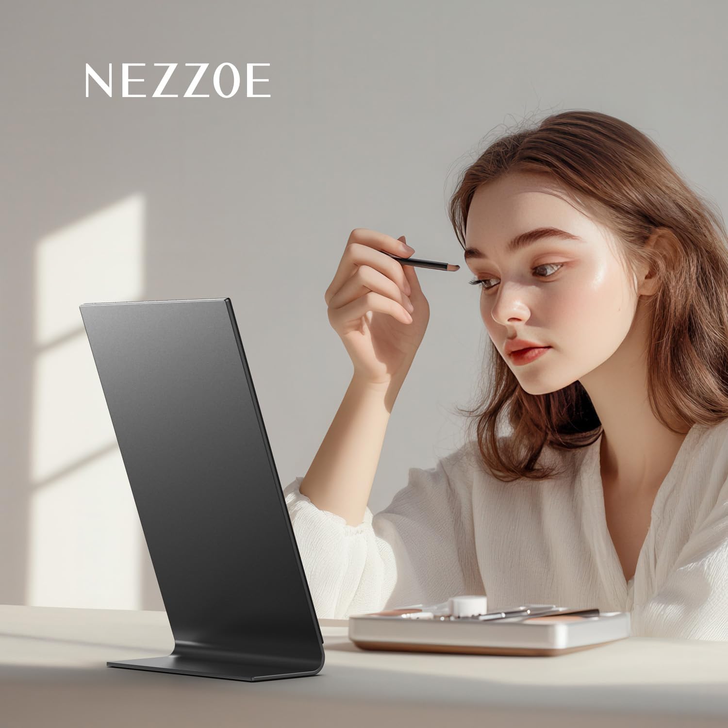 - Space black makeup mirror, rectangular large field design, 12” long and 7” wide, enough to clearly observe every detail of your upper body. No magnification, no distortion