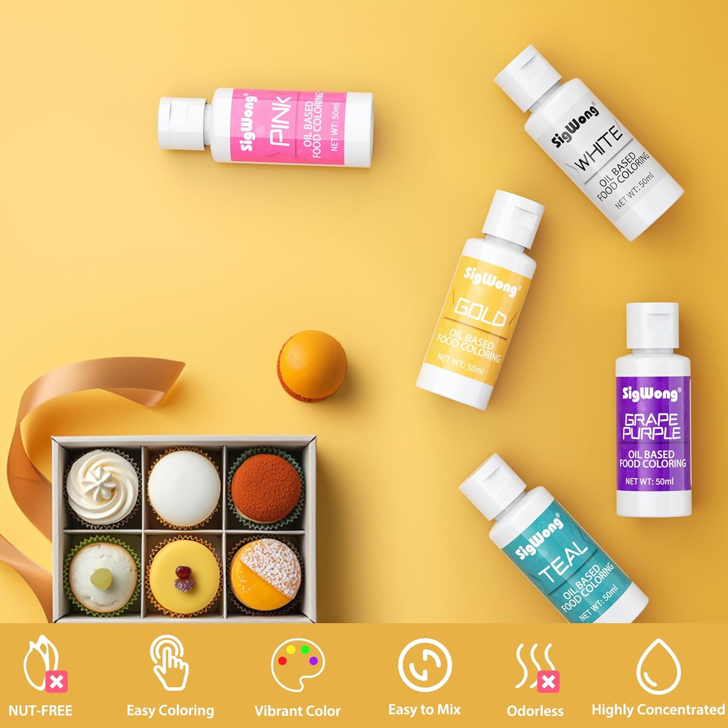 - OIL-BASED FOOD COLORING FOR CHOCOLATE - What are the advantages of oil-based food coloring over other food coloring agents? Oil-based food coloring is specifically designed for high fat content and is soluble in butter, fat and oil, making it perfect for coloring chocolate and candy melts Whereas most other food coloring agents are water-based and will not mix with chocolate or candy melts.