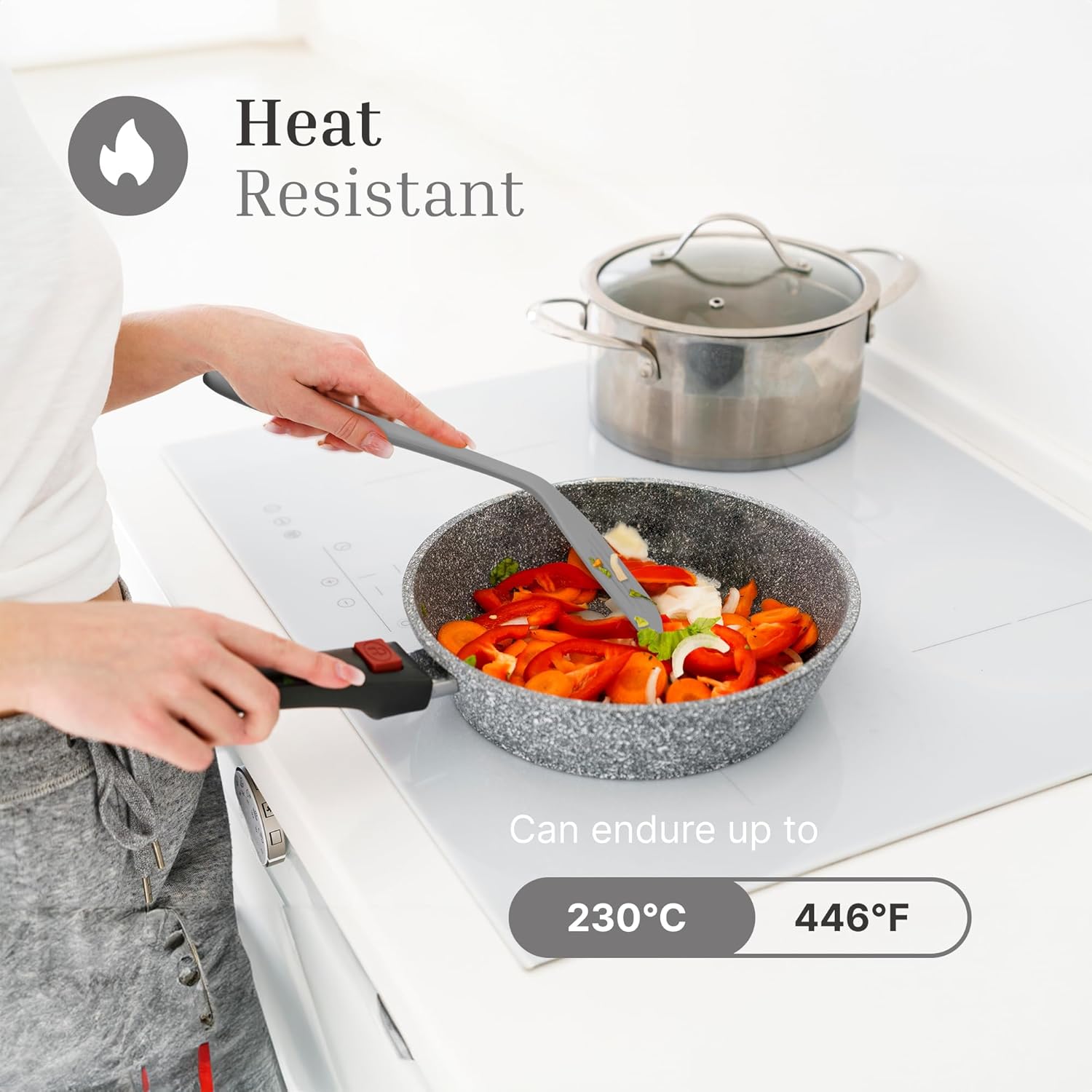 - ๐๐๐๐ญ ๐๐๐ฌ๐ข๐ฌ๐ญ๐๐ง๐ญ: Our silicone slotted spatula is equipped with a heat-resistant material, offering heat resistance up to 230ยฐC / 446ยฐF; this feature of kitchen turner ensures safe usage in cooking and turning, as it eliminates the risk of melting or warping, providing reliability and longevity in culinary tasks