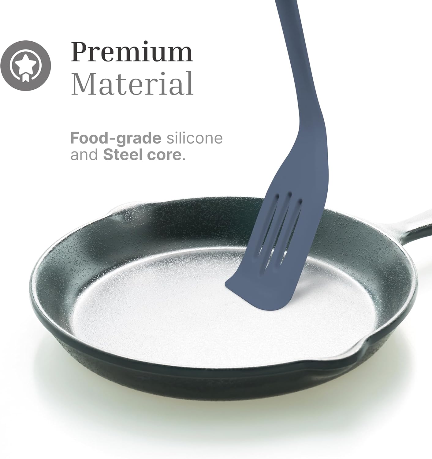 - ๐๐ซ๐๐ฆ๐ข๐ฎ๐ฆ ๐๐๐ญ๐๐ซ๐ข๐๐ฅ: Our turner spatula is crafted from food-grade silicone and it features steel core ensuring durability and sturdiness; this solid construction enhances longevity and stability, making these slotted spatulas reliable tools for various culinary tasks
