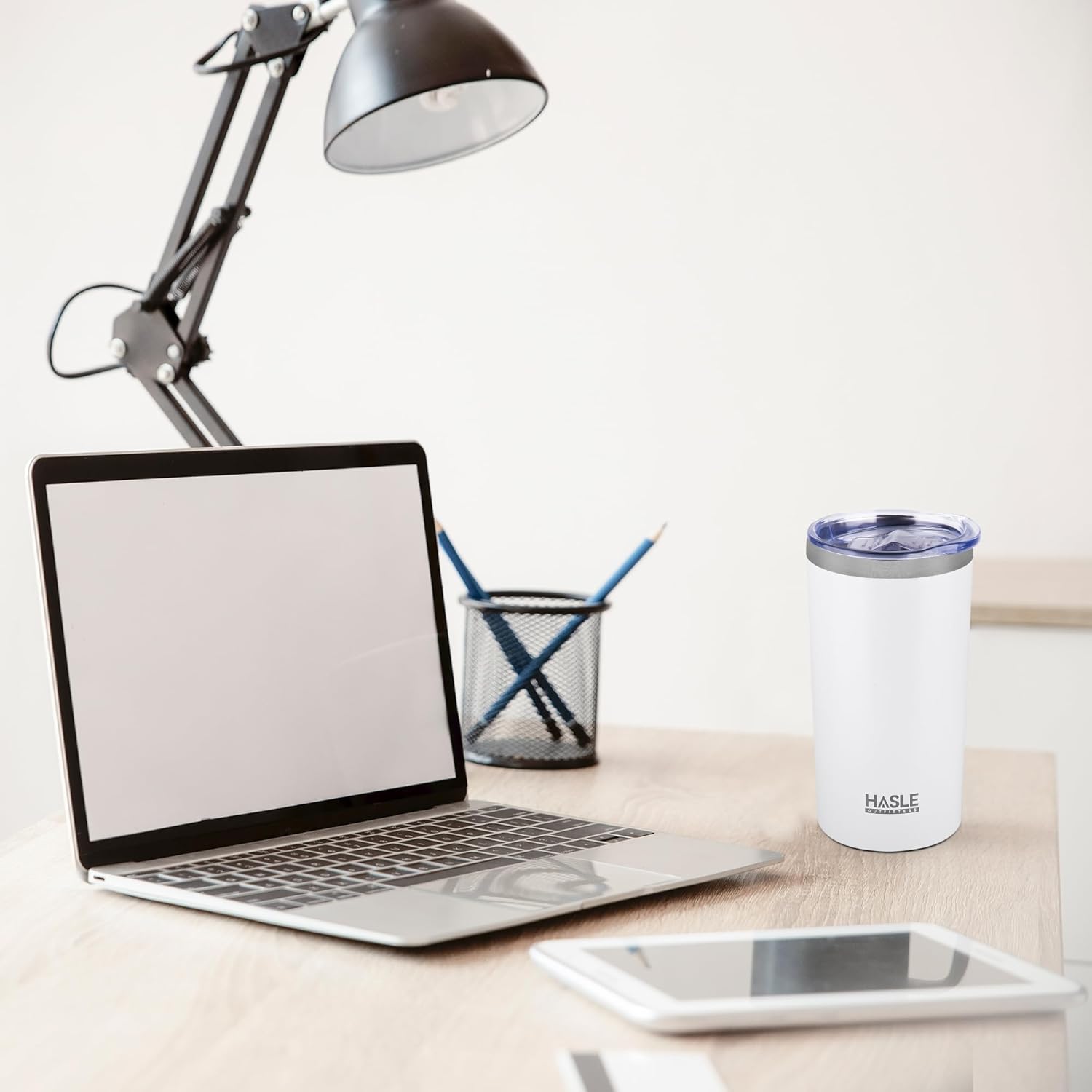 HASLE OUTFITTERS 12 oz Skinny Tumbler, Stainless Steel Insulated Slim Tumbler set bulk with Lid, Reusable Double Wall Travel Coffee Mug, Durable Powder Coated Travel Water Cup(White,6)