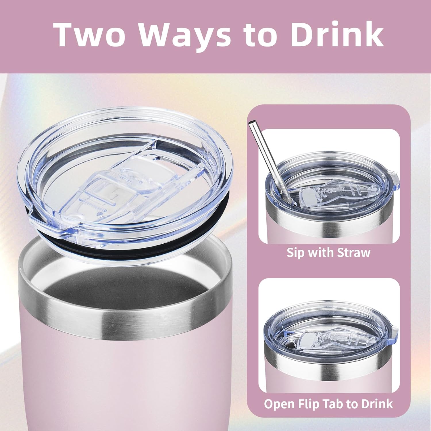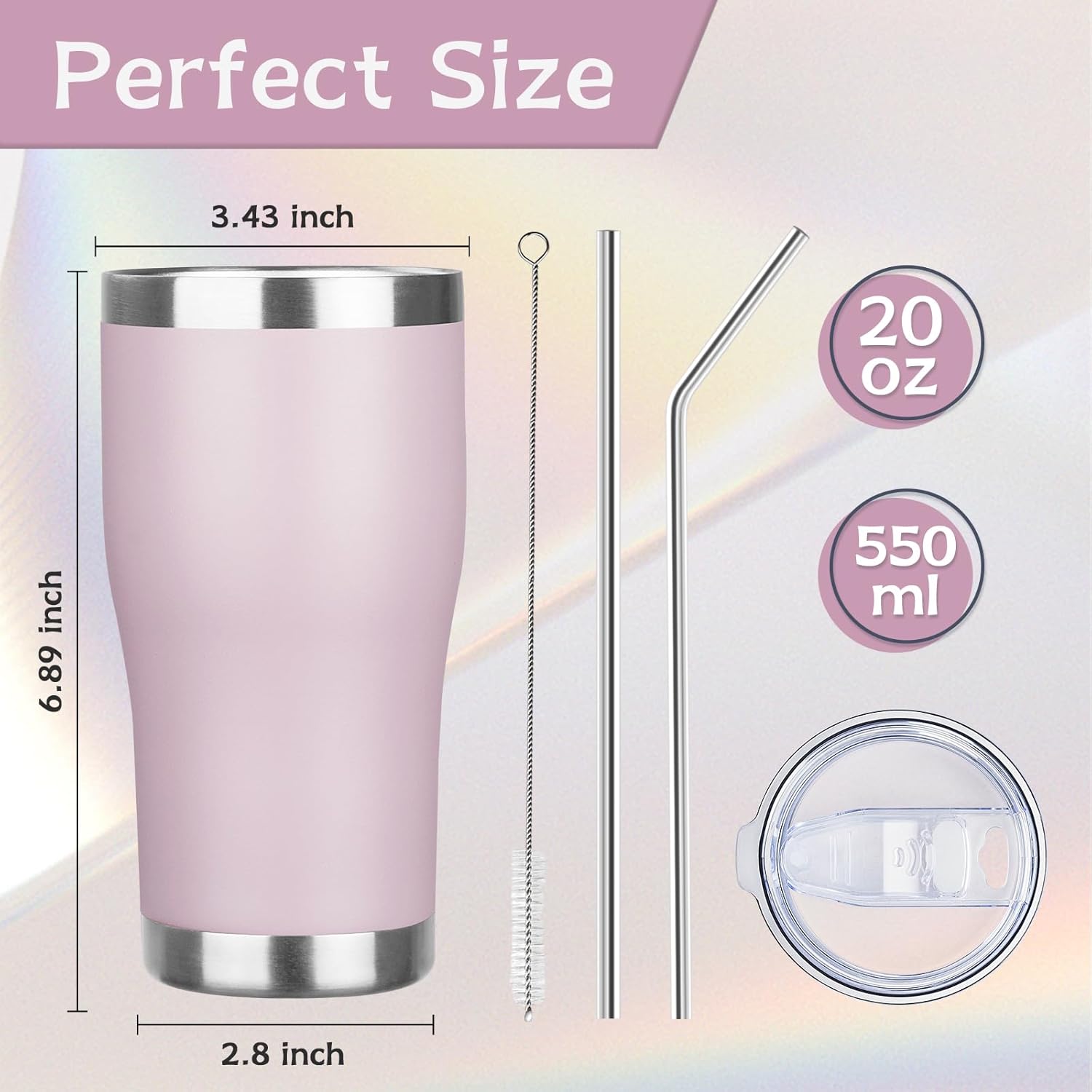 - 🥤【Packing List】: 20oz insulated coffee tumbler with leak-proof lid, two stainless steel straws (one curved and one straight), straw cleaning brush is a great addition (HAND WASH RECOMMENDED). Best for home, office, camping, vacation, sports, travel, etc
