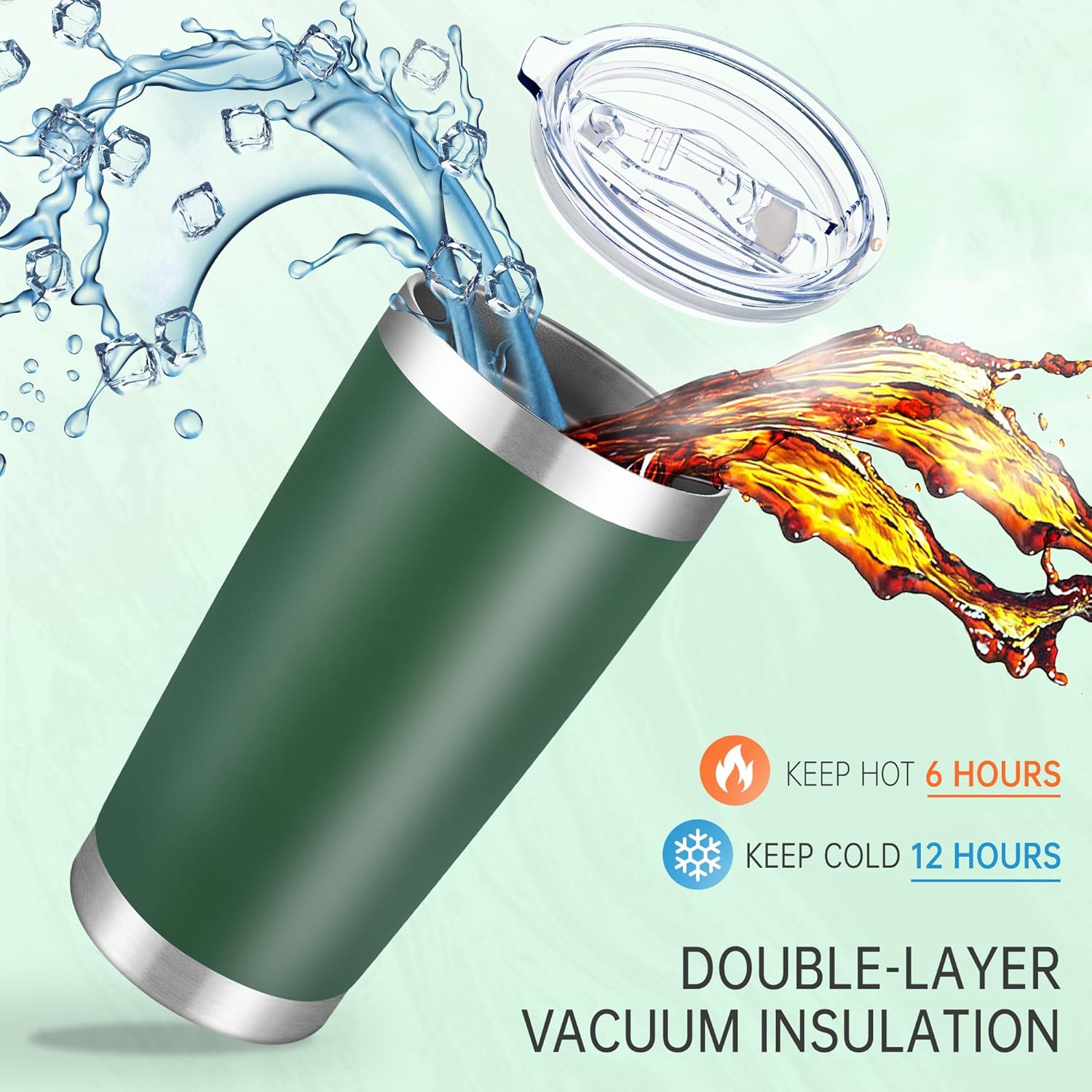 20 oz Tumblers Bulk Stainless Steel Tumbler with Lid Double Wall Vacuum Insulated Coffee Mug 20oz Powder Coated Cup for Hot and Cold Drinks, Dark Green, 6 pack