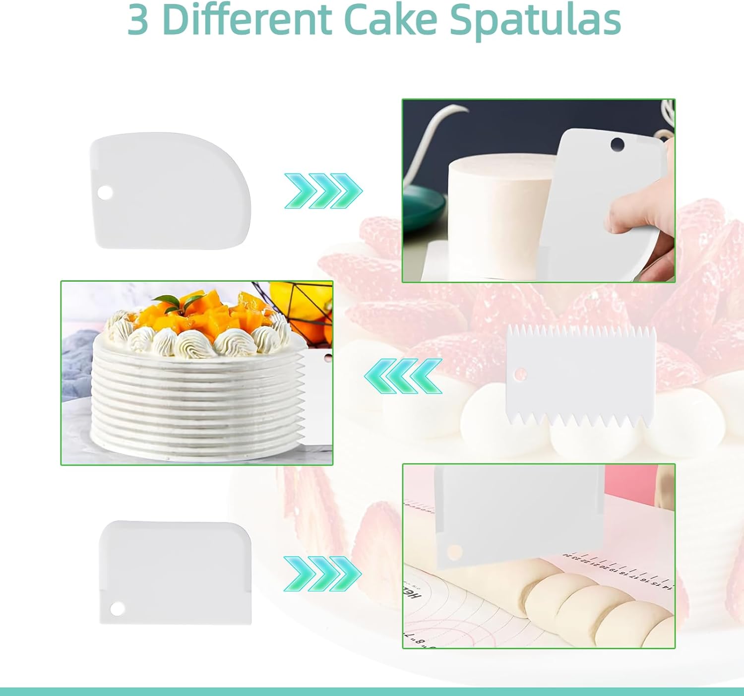- 【Professional Cake Accessories Set】 Uten baking accessories include a variety of accessories needed for baking: 1x cake plate, 2x cake palette, 1x silicone cake scraper, 20x piping nozzles, 2x flower nails, 2x reusable piping bags, 2x piping nozzle adapter, 3x icing smoother.