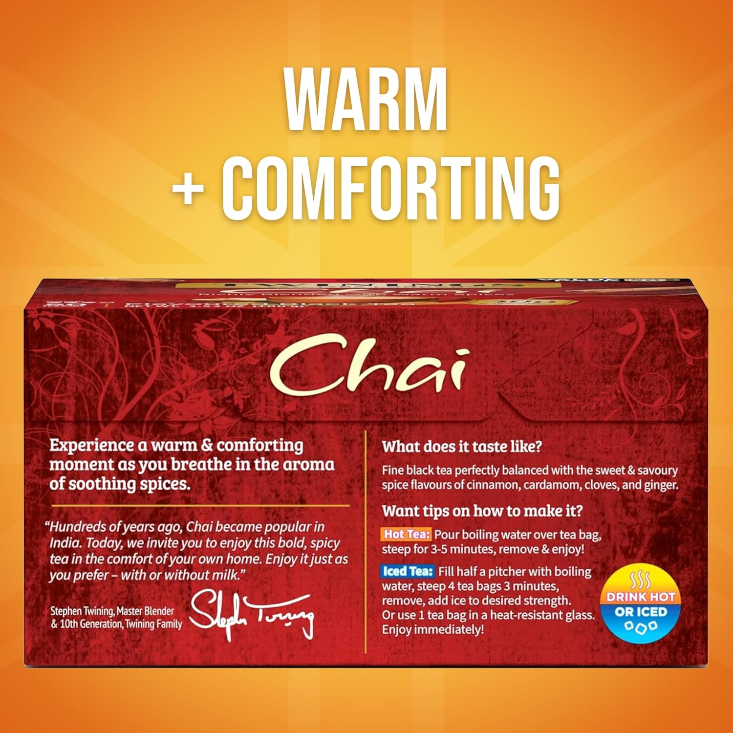 Twinings Chai Black Tea Individually Wrapped Bags, 50 Count (Pack of 6), Sweet, Savoury Spices, Caffeinated, Enjoy Hot or Iced, 300 Teabags