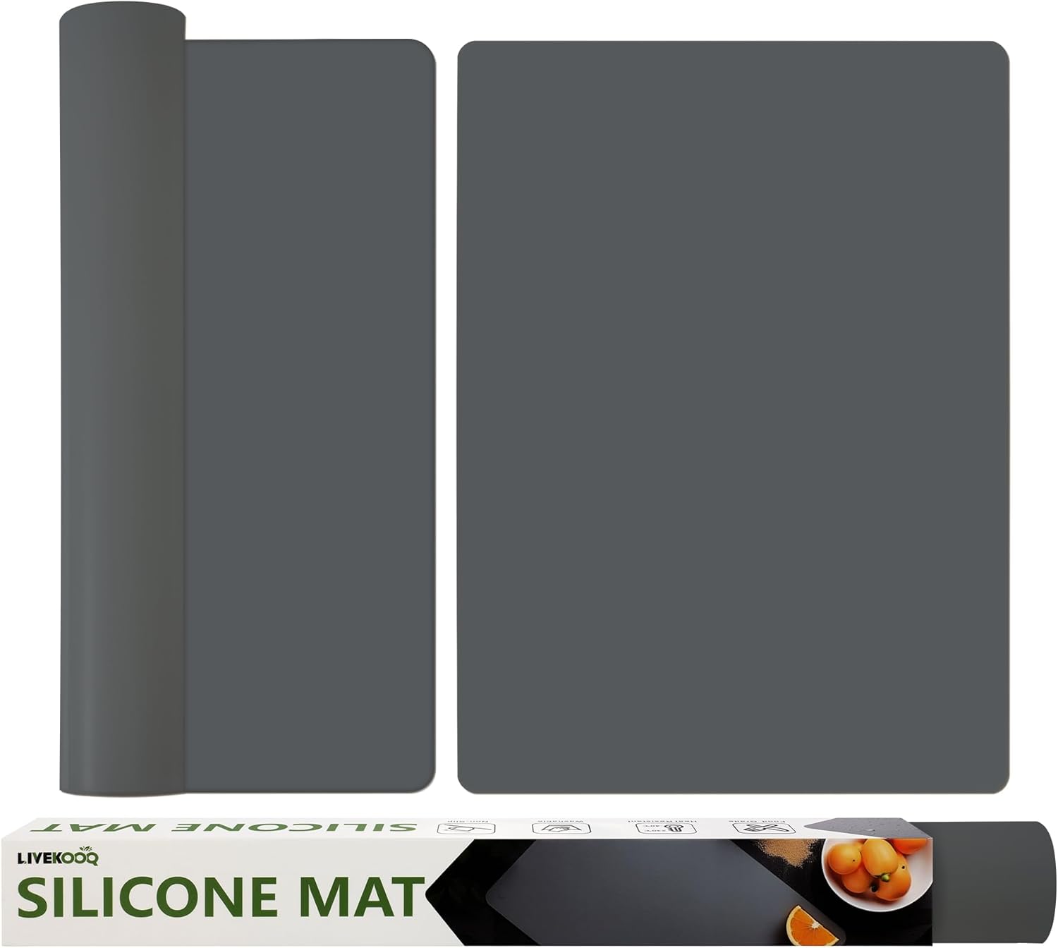 Silicone Mat for Kitchen Counter, Silicone Mat Trimable to Size (Dark Gray, 23.6×15.7inch-2PCS), BPA-Free Silicone Placemat, Heat-Resistant NonSlip Table Mat for Air Fryer, Countertop Protector Mat