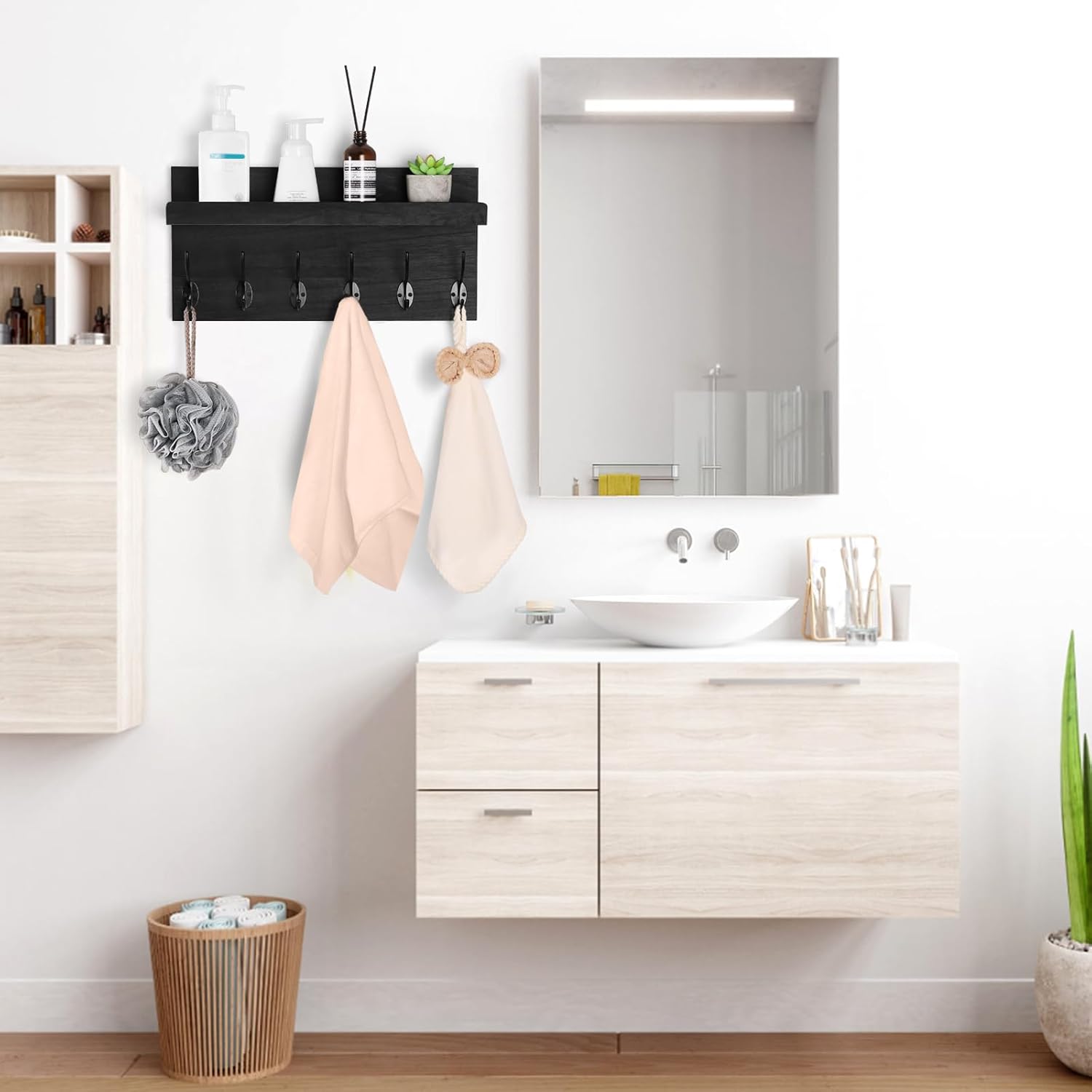 - Suitable for Various Spaces: Whether it's the entrance, study room, living room, kitchen, bathroom, garage, or laundry room, our wall shelf with hooks are versatile and suitable for any area in need of organization and storage. Add a touch of functionality to every corner of your home.