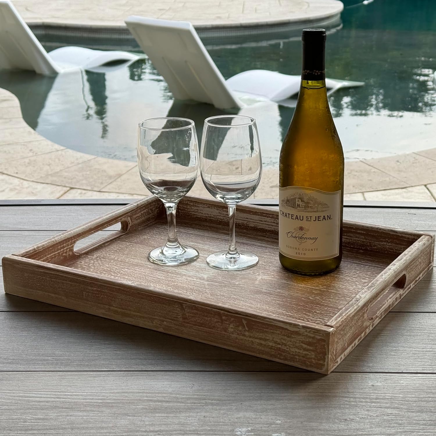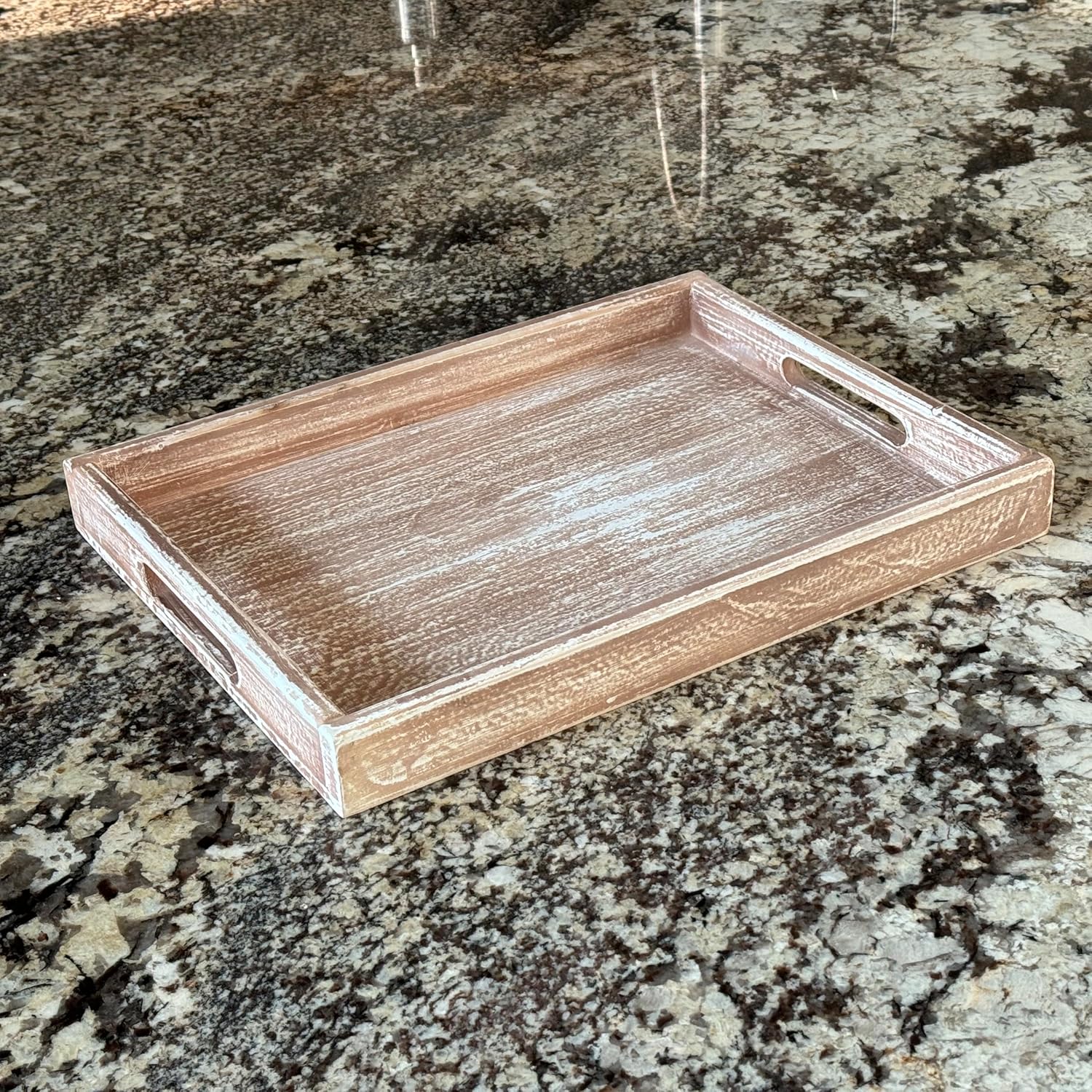 Allgala Wooden Tray - 17"x13"x2" Vintage Beige Rectangle Stylish Rustic Farmhouse Decor Serving Platter