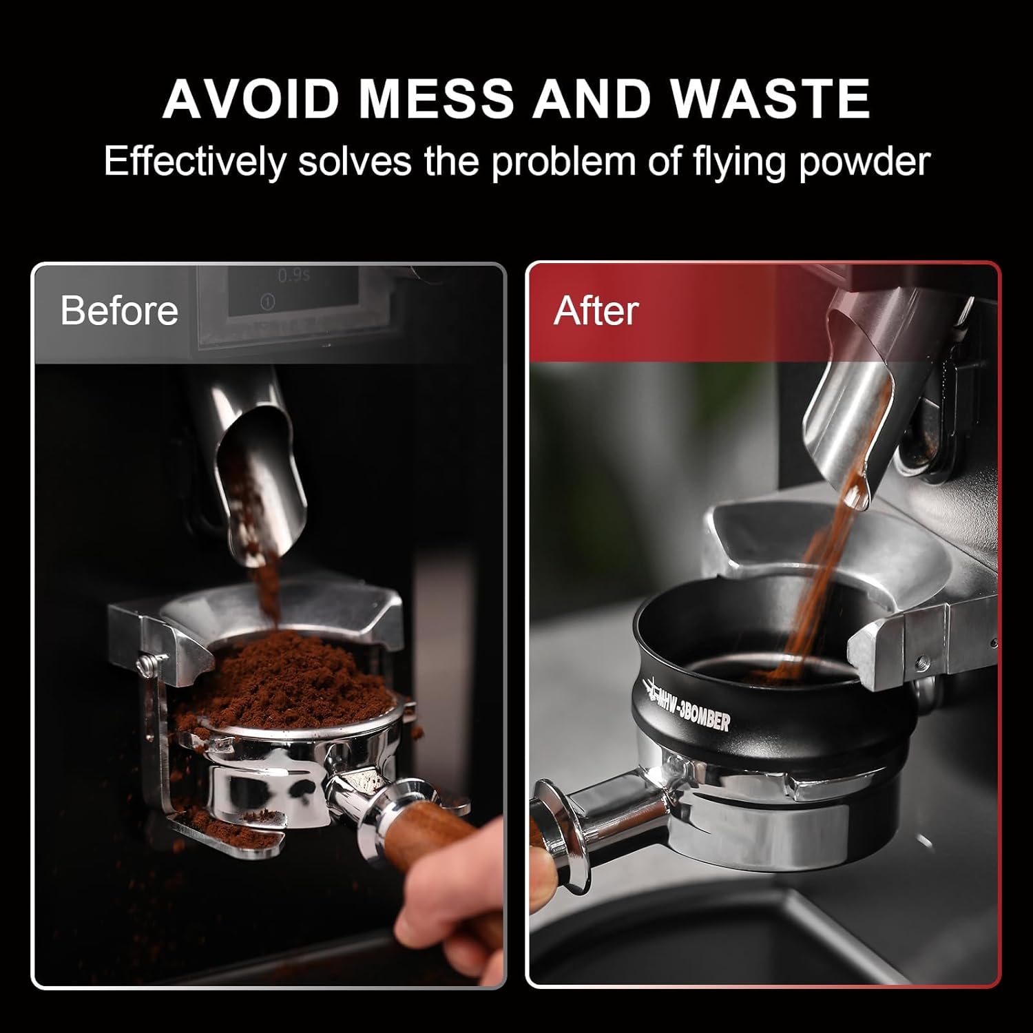 - Avoid Confusion and Waste: The espresso funnel upper opening is designed with flaring to expand the filter range and effectively prevent coffee powder from spilling. The coffee dosing ring is a very useful espresso accessory that can effectively keep your countertops clean.