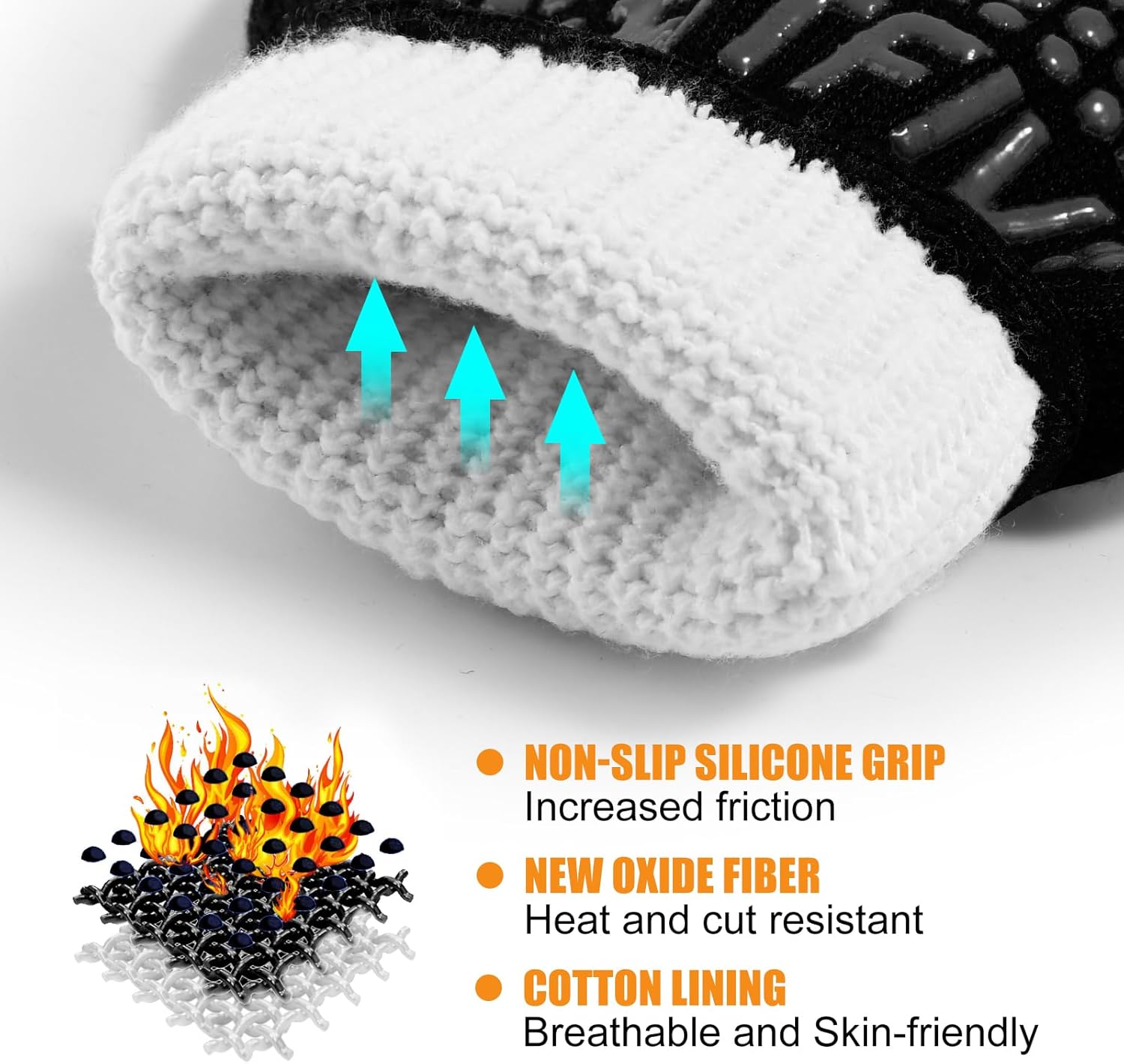 - Anti-Slip Design:To ensure safety and convenience during use, our grilling gloves are covered with a layer of specially designed anti-slip silicone patterns. Not only do these patterns enhance the aesthetic of the gloves, but they also provide exceptional grip strength.