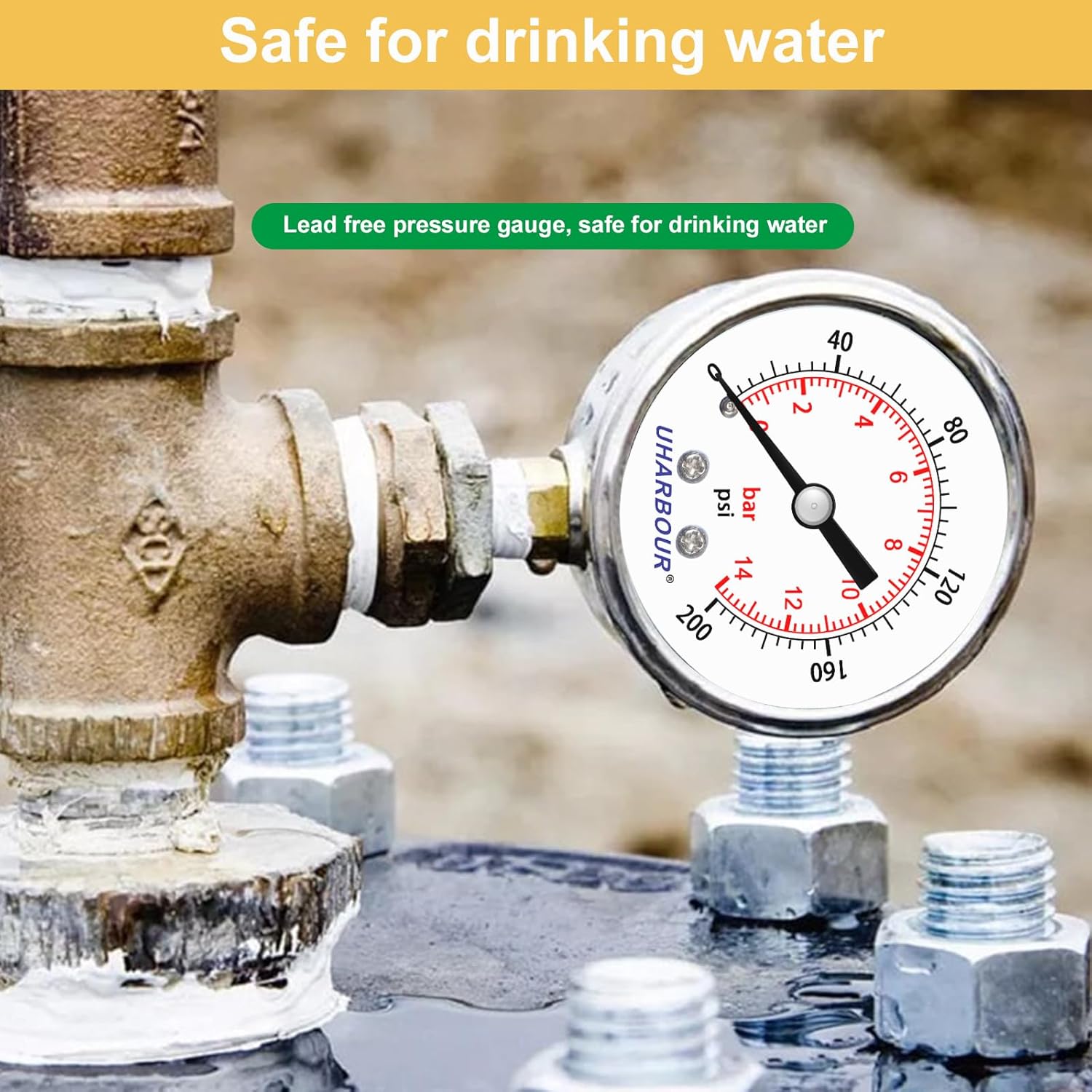 - Lead-Free and Safe: Crafted with high-quality stainless steel and a lead-free construction, our pressure gauge 1/4 npt prioritizes your safety and complies with industry standards.