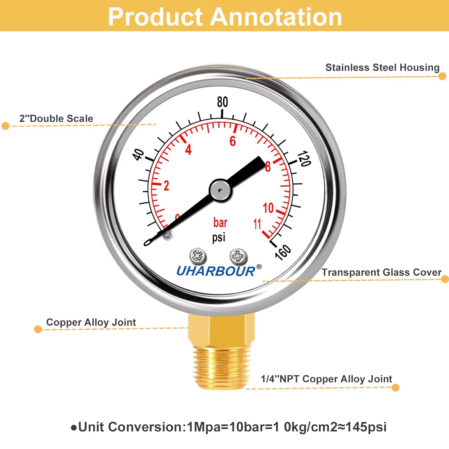 - Durable and Reliable: Constructed with a stainless steel case, this pressure gauge is built to withstand demanding environments and ensures long-lasting durability for years of reliable use.