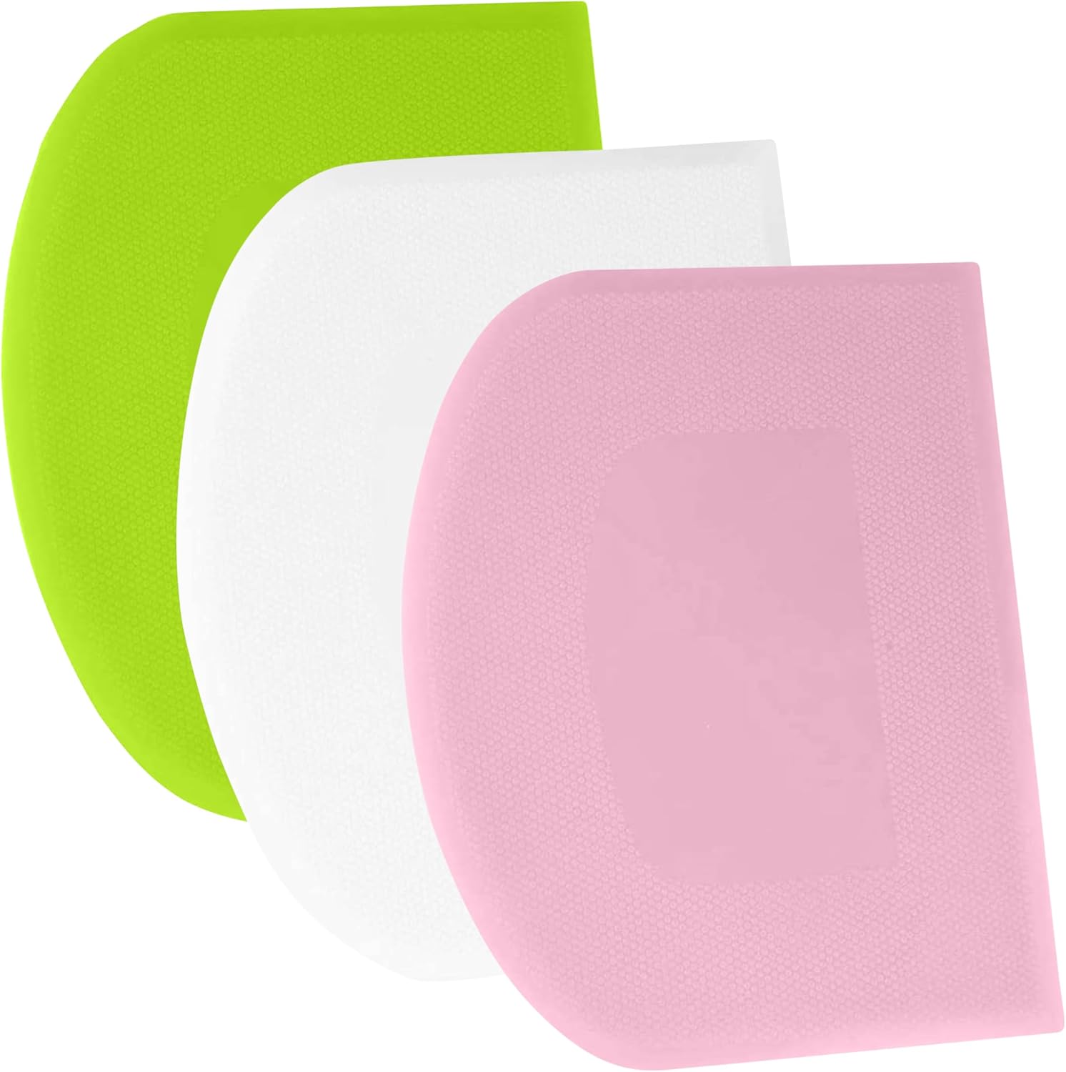 SURDOCA Dough Scraper Bench Scraper - 3P 4.7x3.7" Plastic Flexible Bowl Scraper, Sharp Edge & Angles Cake Scraper. Non-Slip Bakeware Decorating Tools Sculpting & Modeling Tools - Pink+White+Green