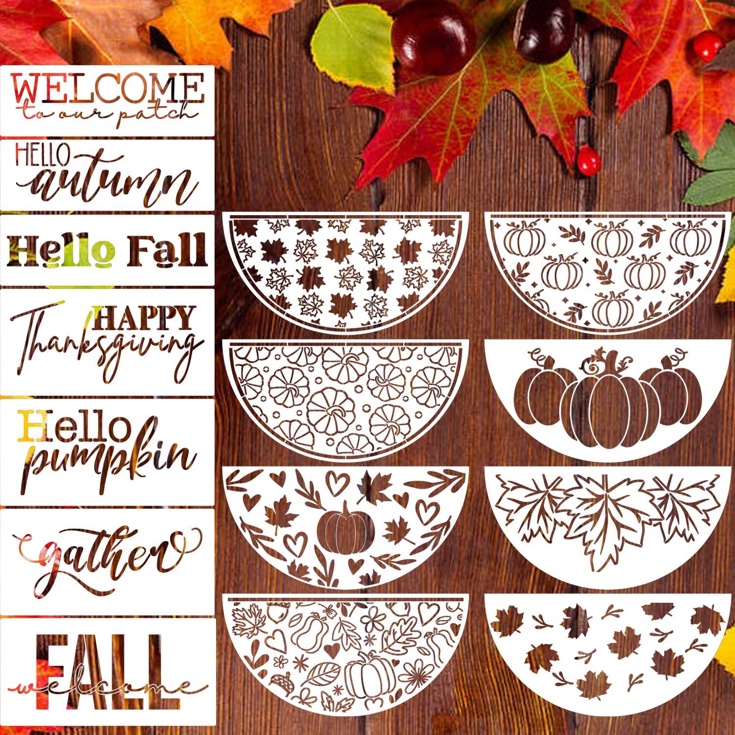 - What You Get:15pcs large fall stencils for porch,every reusable autumn stencil is 12x6inch and 12x4inch.